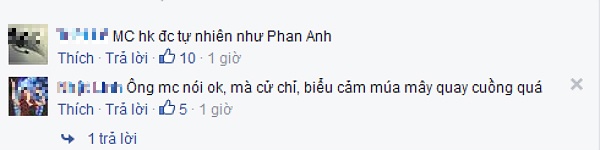 Những nhận xét không mấy khả quan của khán giả dành cho MC Duy Hải trên fanpage chương trình. |