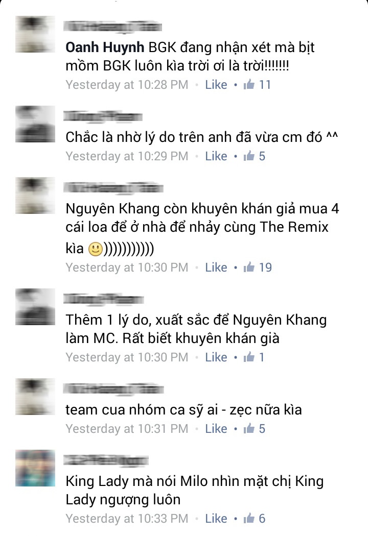 Trong phần trò chuyện của mình với khán giả, MC Nguyên Khang đã có đôi lời khuyên khán giả ở nhà nên mua thêm 4 cặp loa để có thể tận hưởng chương trình một cách hoàn hảo nhất. Một số ý kiến của cư dân mạng cho rằng lời khuyên này hơi “lố” và đặt cho Nguyên Khang biệt danh “MC hay khuyên khán giả nhất”. Bên cạnh những lời khuyên có phần hơi “lố”, Nguyên Khang còn có những màn ngắt lời thoại của giám khảo khá đột ngột khiến nhiều khán giả không hài lòng.
