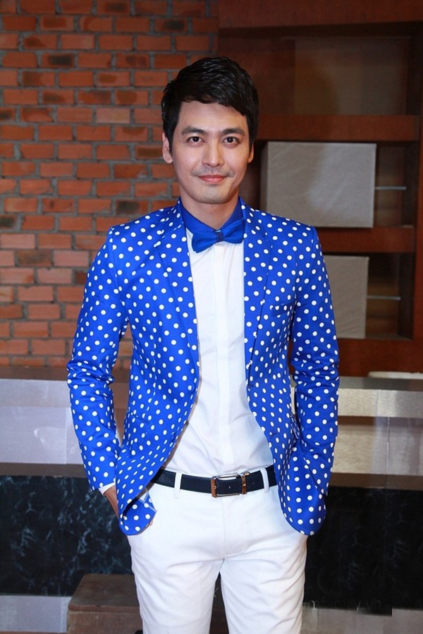 | Đảm nhận vai trò dẫn dắt chương trình Vietnam Idol 2013, Phan Anh tạo ấn tượng với giới mộ điệu khi chọn những bộ cánh hợp trào lưu. Kiểu mốt áo vest chấm bi được anh ứng dụng khá hiệu quả. Kết hợp cùng áo vest chấm bi lịch lãm là áo sơ-mi trắng và quần gam xanh hợp tổng thể. |