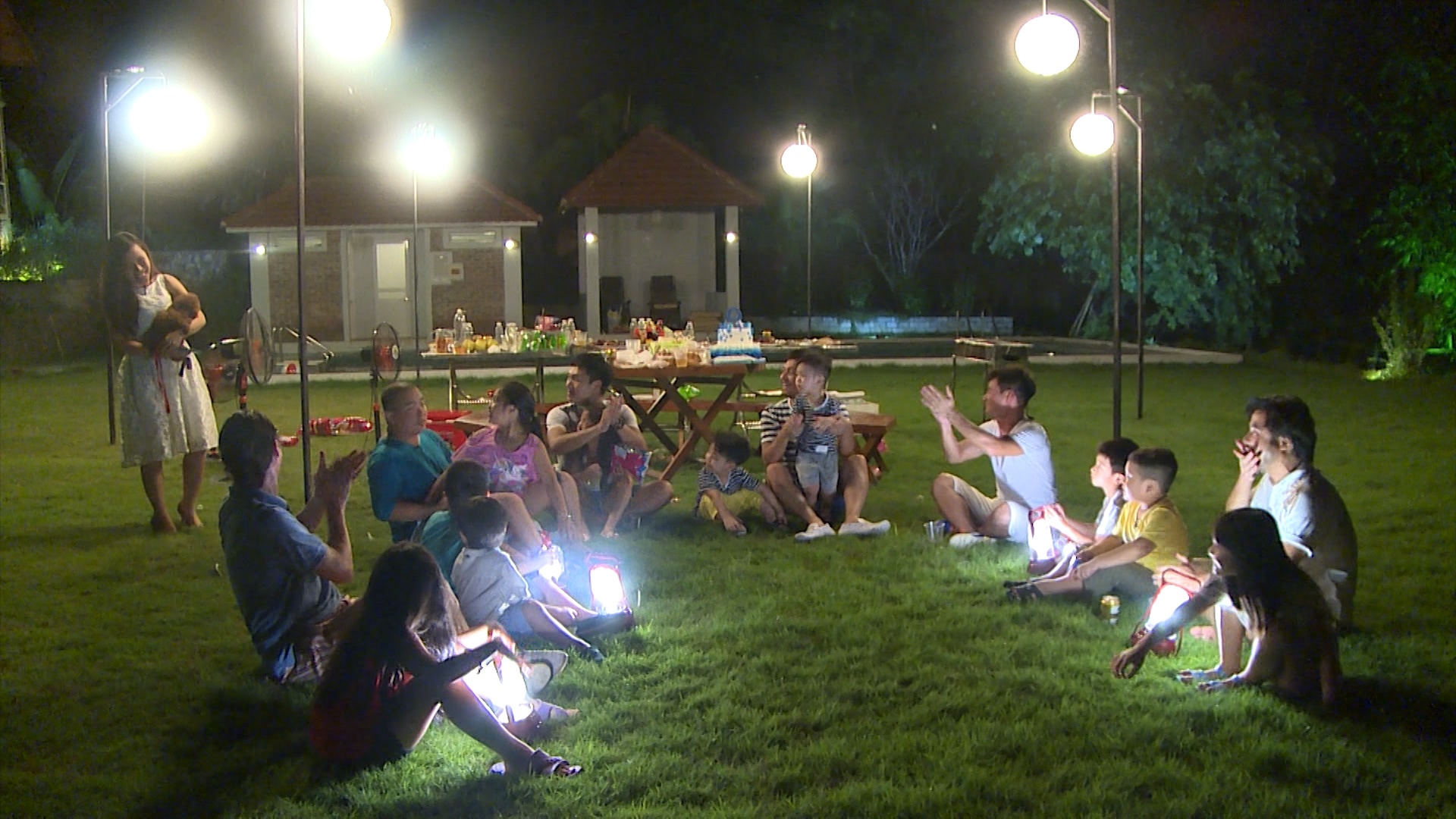 | Sau một ngày dài trở về với tuổi thơ, các cặp bố con được quây quần bên nhau trong khí vui tươi, đầm ấm cùng một bữa tiệc nướng thỏa mãn. |