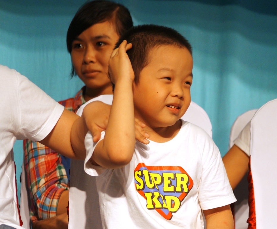 | Cậu nhóc hiếu động mang đến những tiếng cười cho cả trường quay. |