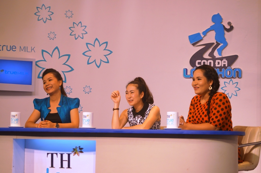| MC Thanh Thảo tại phim trường cùng thạc sĩ Tô Nhi A (Trái) và nhà báo Dạ Ly (phải). |