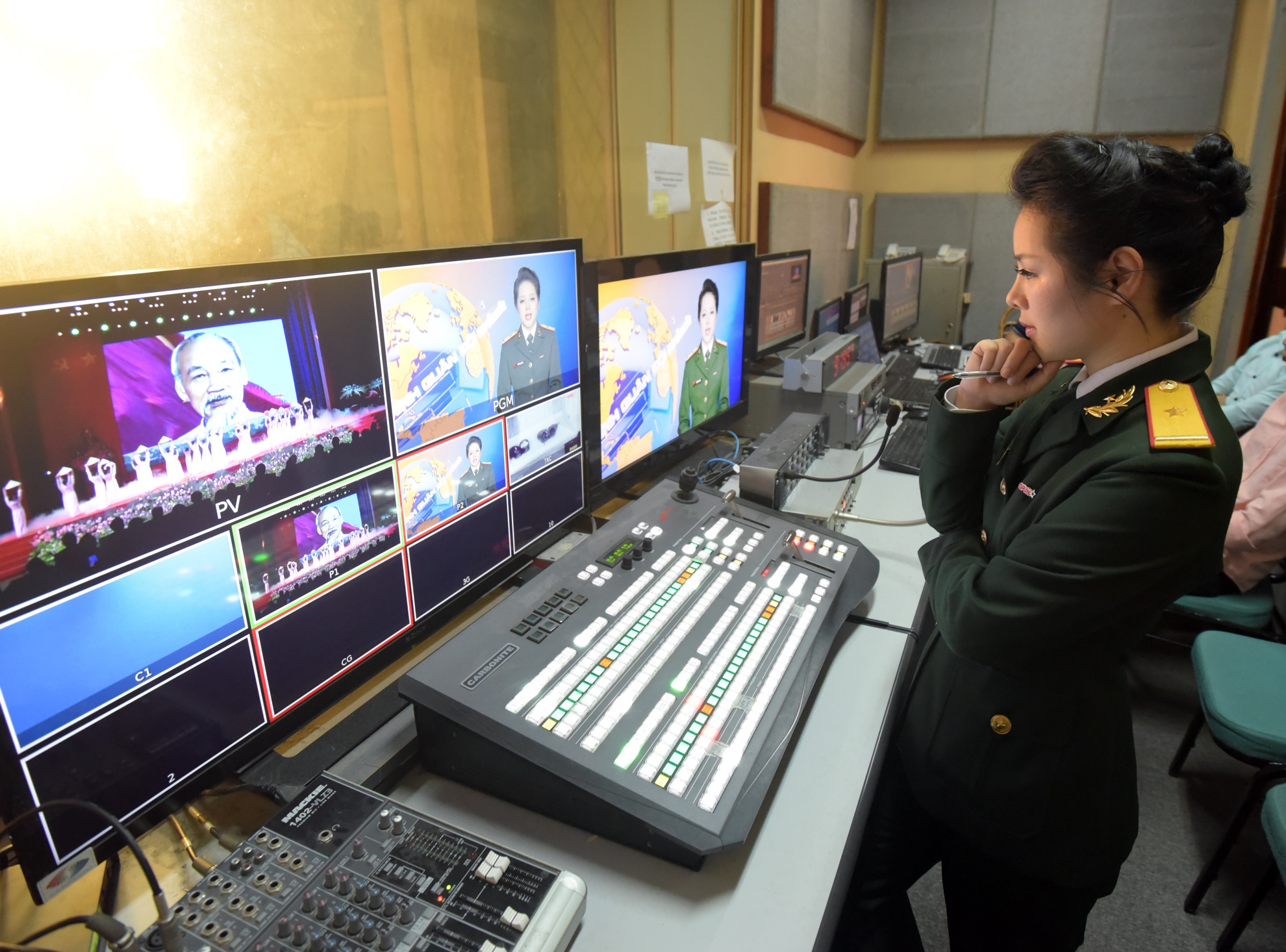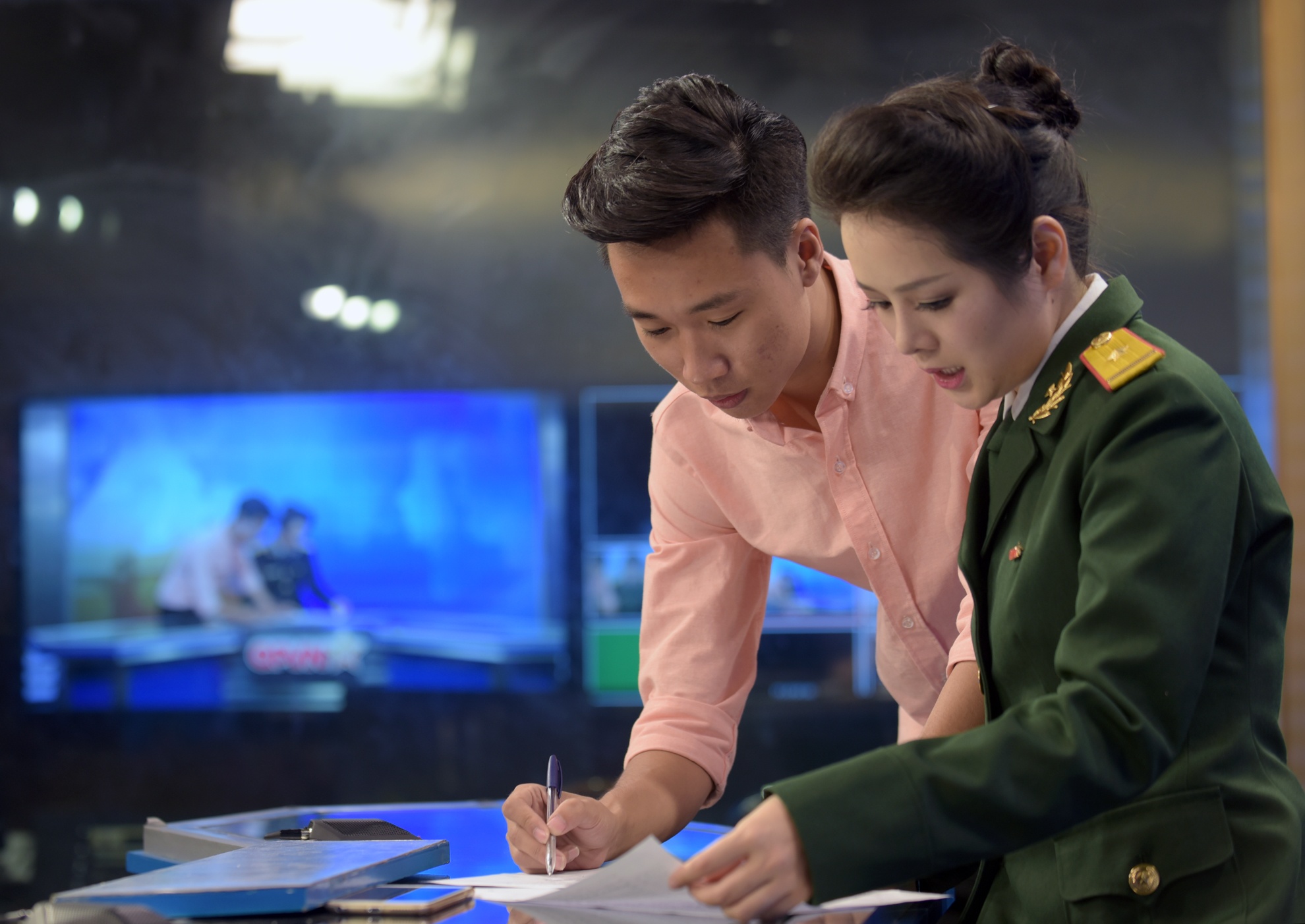 Hình ảnh tại phòng thời sự chuẩn bị các bản tin, chuyên mục - nơi Hoài và đồng nghiệp ngày đêm cống hiến.