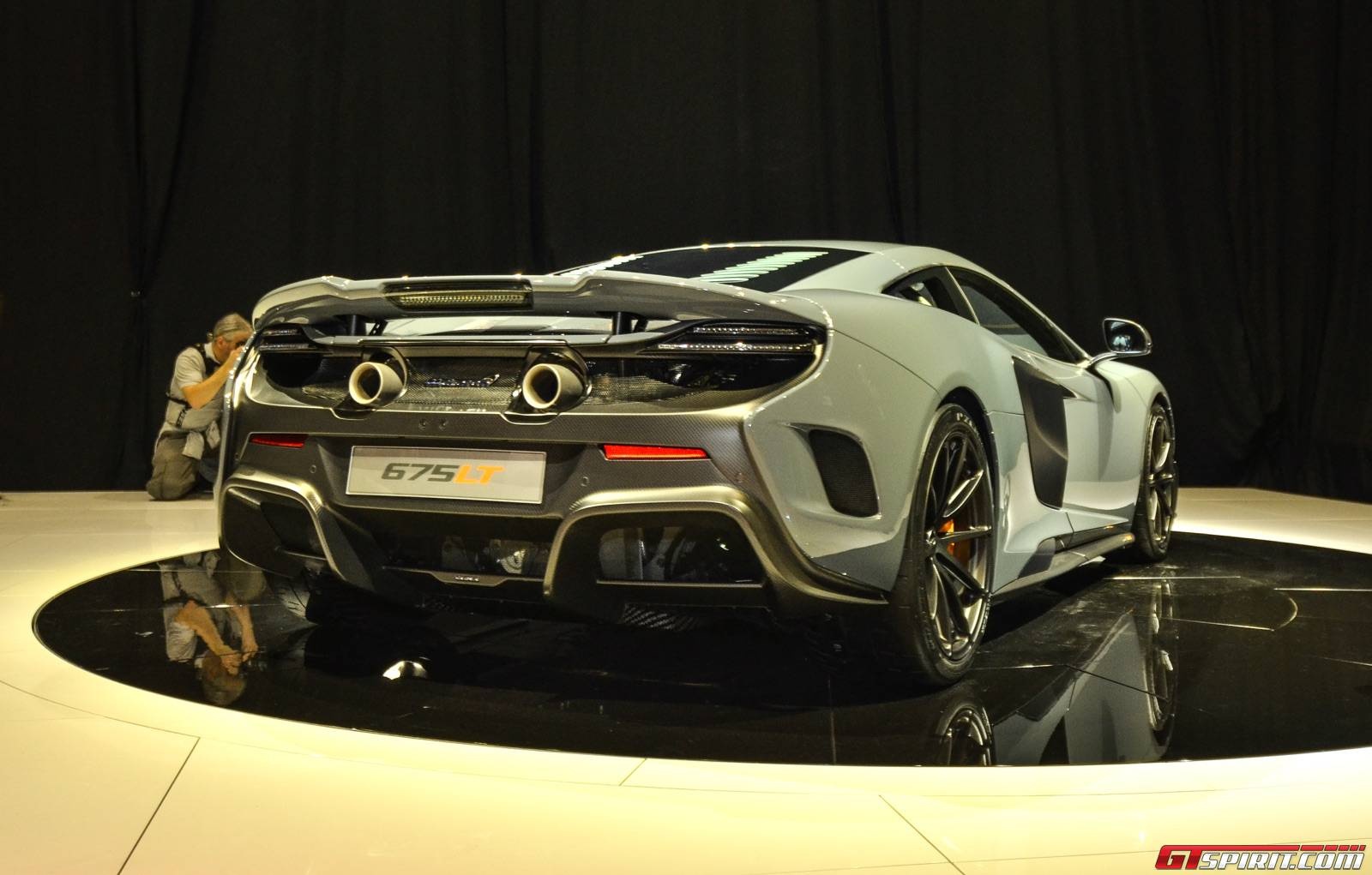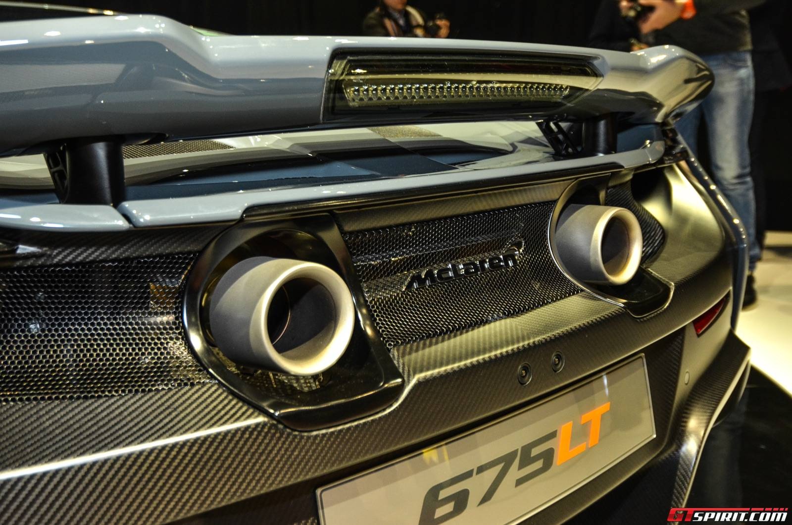 | Nguyên mẫu 675LT được giới thiệu trong tông màu xám "Chicane" mới. McLaren cũng giới thiệu thêm gói tùy chọn dành cho đường đua giá 5.090 bảng, với đai an toàn bốn điểm và một hộp titan chứa bình cứu hỏa. |