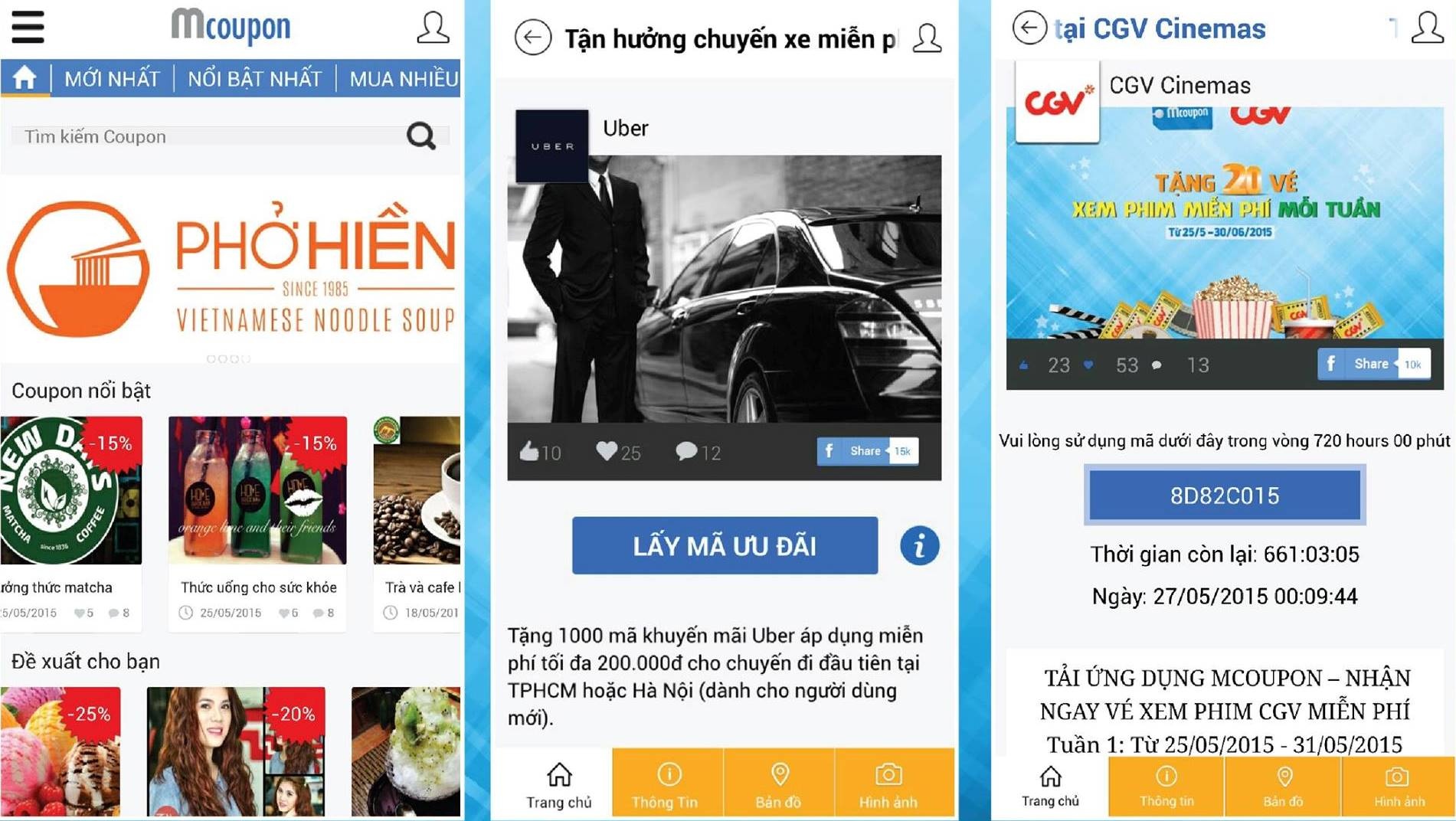 | Giao diện Mcoupon thân thiện và tích hợp nhiều tính năng thú vị cho người dùng. |