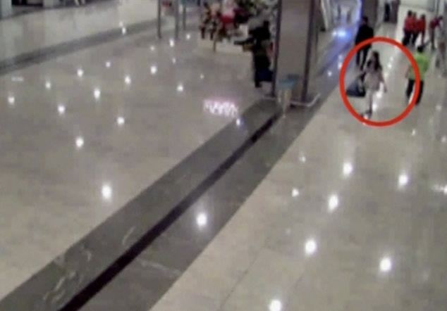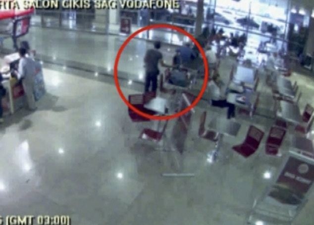 | Người đàn ông Đức đặt đứa trẻ trên bàn khi chờ bước ra khỏi khu vực kiểm tra hộ chiếu. Cảnh sát sau đó phát hiện đứa trẻ trong túi và bắt giữ cặp vợ chồng. Sau khi kiểm tra video an ninh ghi hồi tháng 9, họ cũng bắt người phụ nữ Turkmenistan và trả lại đứa bé cho cô. Giới chức Thổ Nhĩ Kỳ cuối cùng đã trục xuất 3 mẹ con người Turkmenistan về nước, trong khi cặp vợ chồng người Đức không bị buộc tội. Ảnh: Daily Mail |