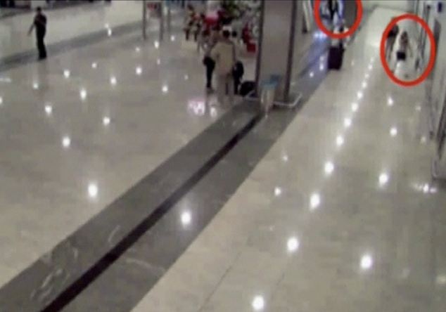 | Mẹ con người phụ nữ Turkmenistan xuất hiện tại sân bay, trong khi đứa trẻ nằm trong chiếc túi xách màu đen. Ảnh: Daily Mail |