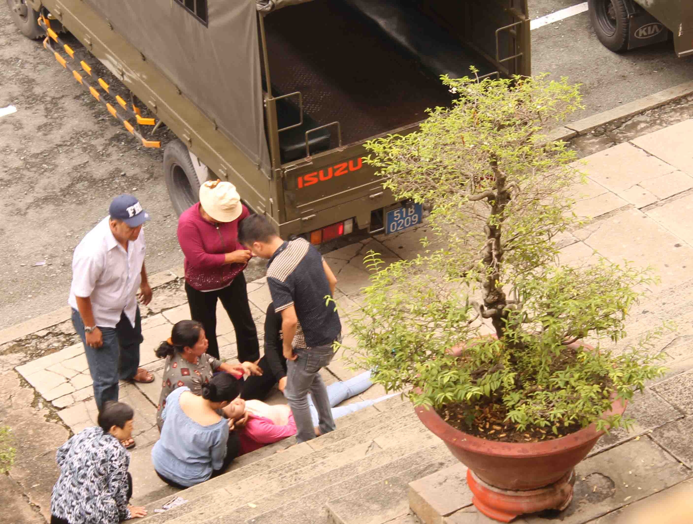 Sau khi tòa tuyên án, 2 người con của Thanh khóc ngất trước sân tòa và quỳ xuống xin tha mạng cho mẹ. Ai nhìn thấy cảnh này cũng xót xa.