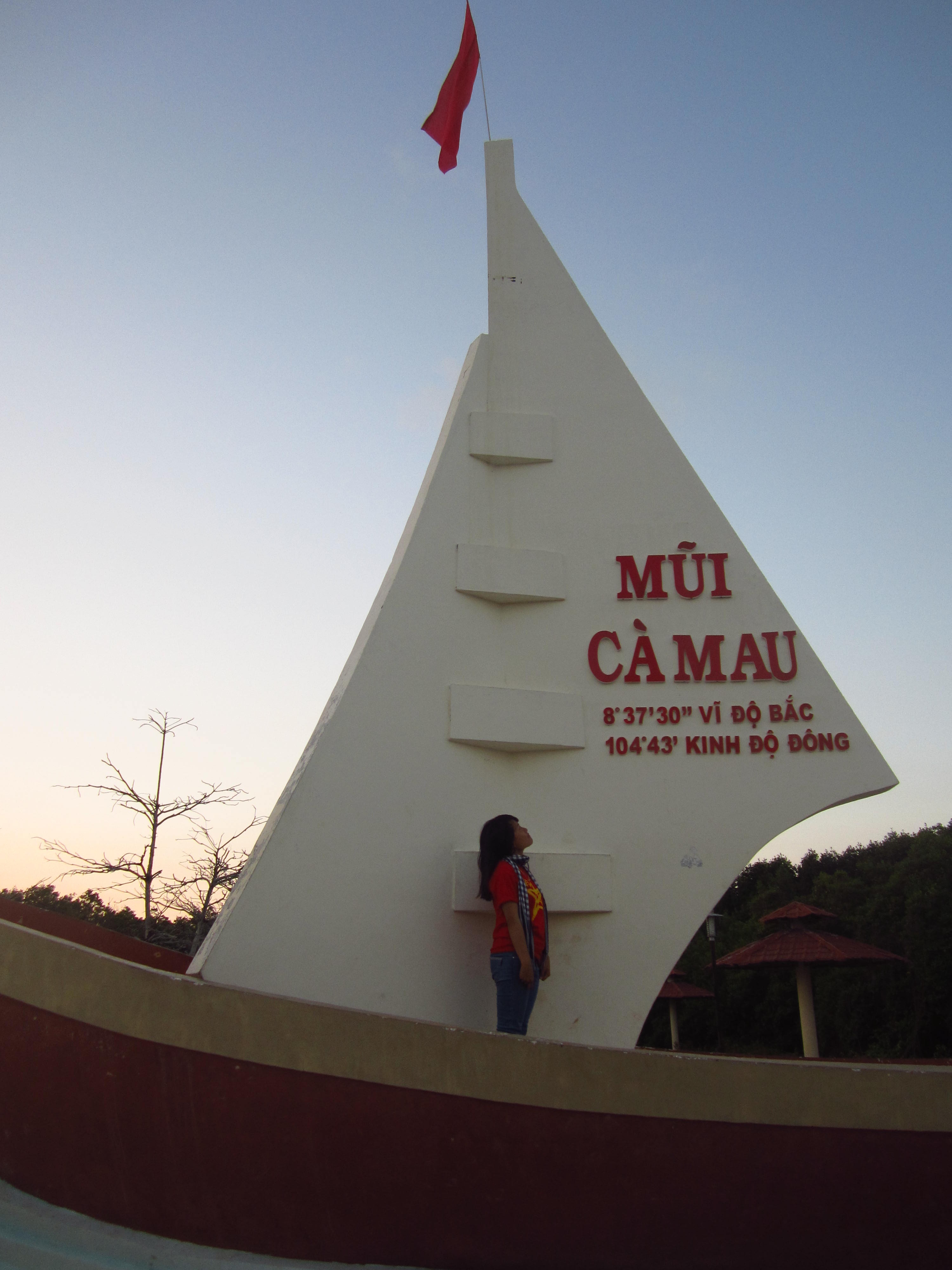 | Và sau khoảng một giờ ngồi tàu cao tốc, tôi cũng đã cập bến Khu du lịch Đất Mũi, đi bộ vào chừng 5 phút là đến, và đây chính là cột mốc GPS001 cực nam, được xây dựng vào năm 1995, và đất liền của chúng ta thì mỗi năm đều được bồi thêm một ít, đúng là đất lộc.  |