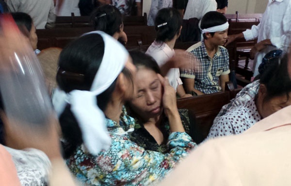 | Mẹ bị hại khóc ngất khi đến tòa. Ảnh: Lê Tú. |
