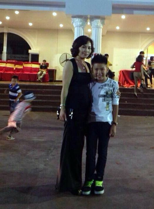 | Hai mẹ con Ngọc Duy chụp hình trong một lần đi chơi. |