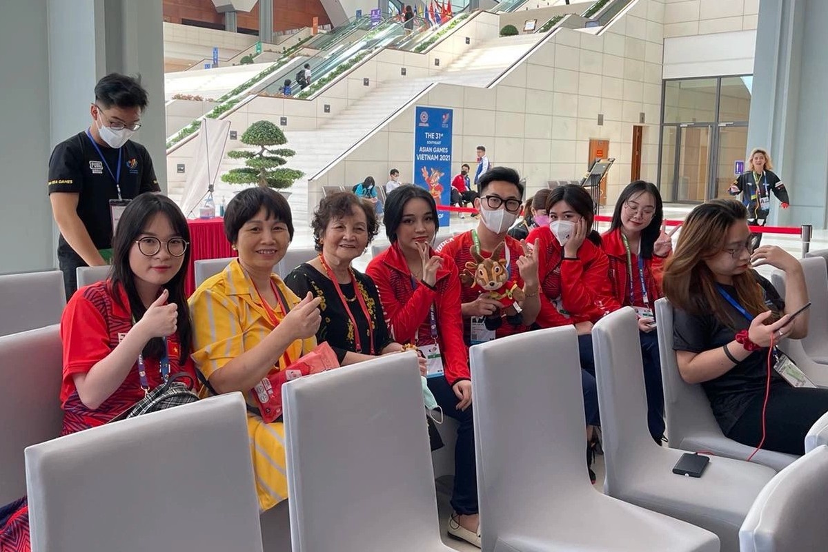 Đến ngày thi đấu cuối cùng của con gái, người mẹ cùng con trai lớn và một số bạn bè khác mới sắp xếp được thời gian đến cổ vũ trực tiếp.