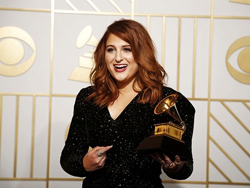 | Ca sĩ Meghan Trainor hạnh phúc với Giải Grammy hạng mục Nghệ sĩ mới xuất sắc Ảnh: REUTERS. |