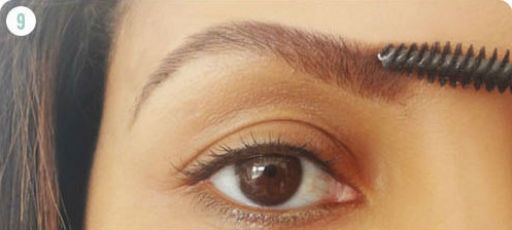 | Dùng cọ có gel màu nâu chải đều lông mày hướng lên trên để giúp đôi lông mày trông tự nhiên hơn. |