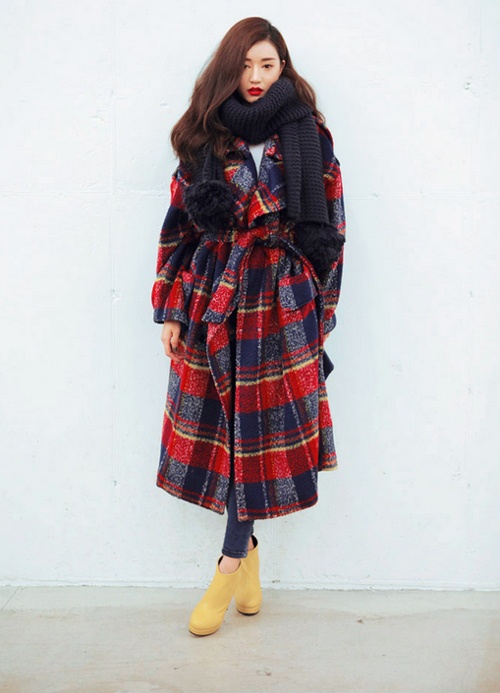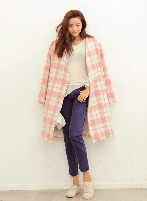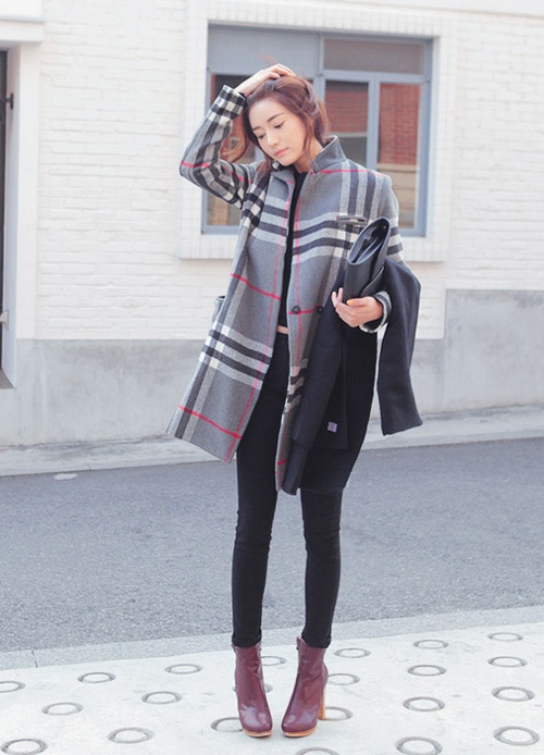Với bạn gái có chiều cao chuẩn có thể lựa chọn kiểu dạ kẻ ô lớn với chiều dài gần chấm gót. Với mẫu áo này, bạn chỉ diện thêm boot là đã đẹp mắt rồi.