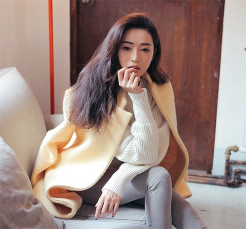 Với những cô nàng ưa phong cách thanh lịch hẳn không thể bỏ qua màu vàng mơ đáng yêu khi mix kèm áo len trắng.