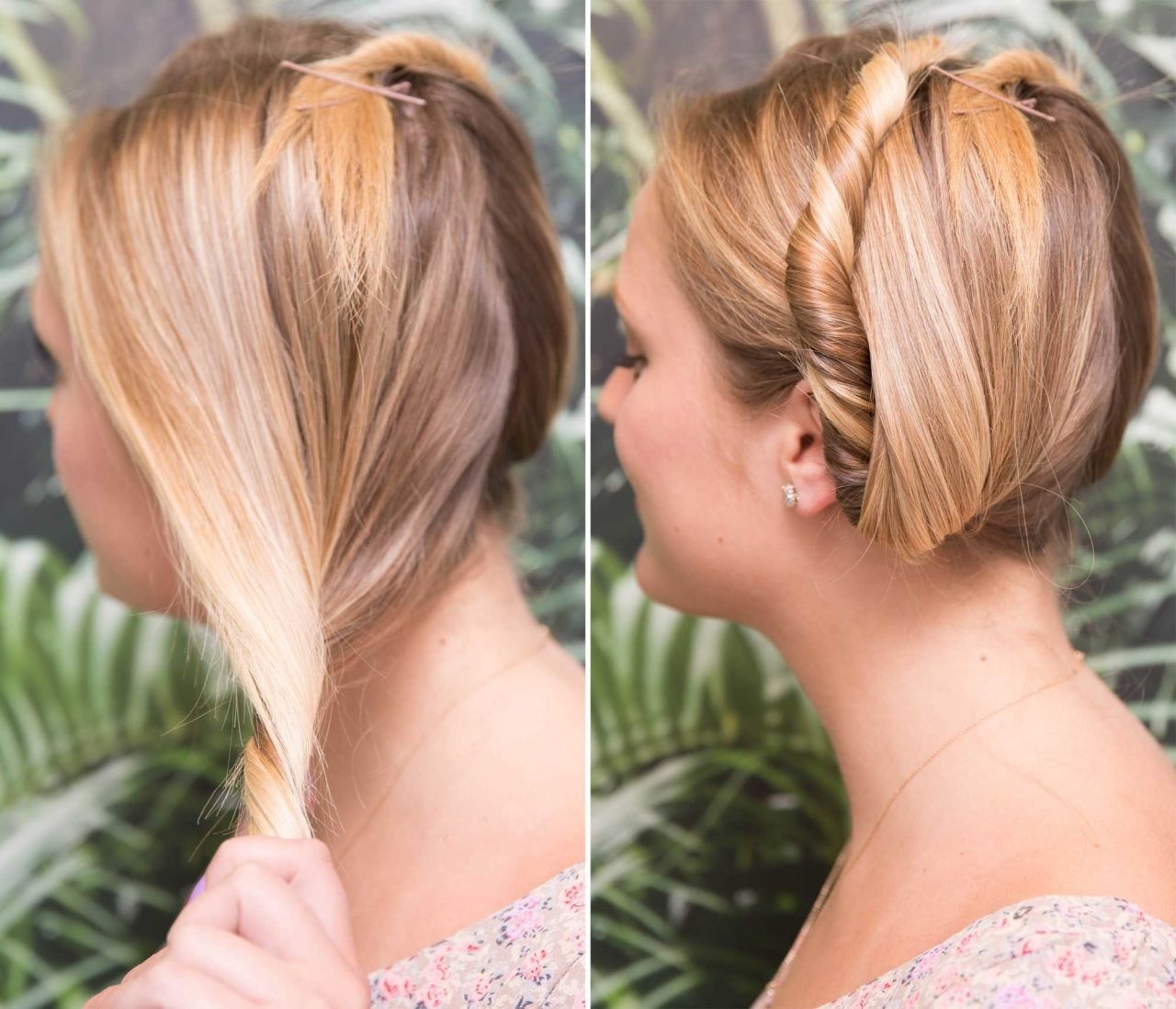 Nếu bạn không có thời gian sấy thì búi tóc là một trong những lựa chọn hàng đầu để tóc nhanh khô, tránh cảm giác khó chịu khi ra ngoài. Với kiểu búi hai lần buộc bạn chỉ cột tóc kiểu đuôi ngựa cao, chia đôi, buộc hai phần tóc lại với nhau hai lần, rồi dùng kẹp ghim cố định.