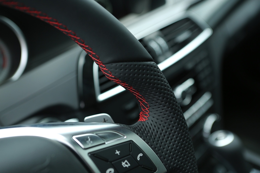 | Tay lái bọc da thể thao của C300 AMG Plus. |