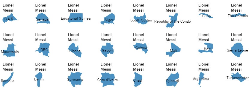 | Những quốc gia có từ khóa "Messi" được tìm kiếm nhiều nhất thông qua Google. Ảnh: Time. |