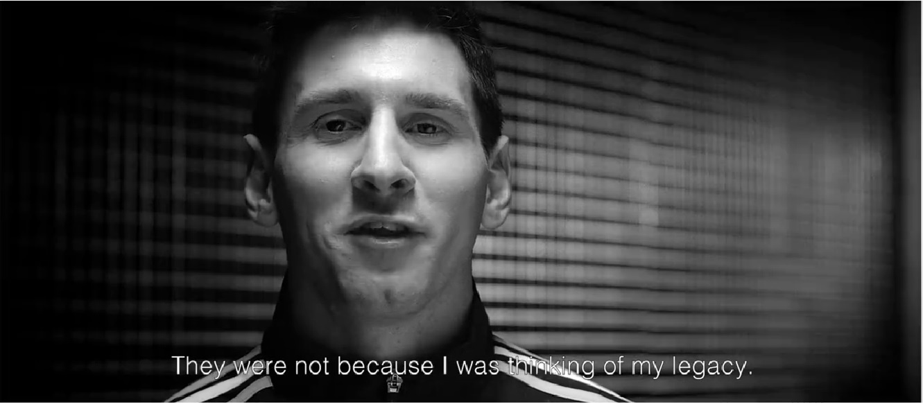Tham gia vào loạt phim này, từng cầu thủ thể hiện tuyên ngôn thể thao và niềm đam mê của mình. Với Messi, đó là lối chơi cống hiến từng giây, từng phút để mỗi trận cầu đều như lần cuối cùng anh được chơi bóng.