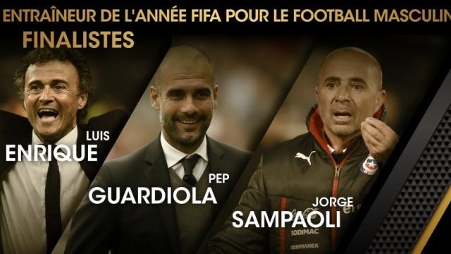 Ngoài ra FIFA cũng công bố danh sách rút gọn 3 đề cử danh hiệu huấn luyện viên hay nhất 2015, gồm Luis Enrique (Barcelona/Tây Ban Nha), Pep Guardiola (Bayern Munich/Tây Ban Nha) và Jorge Sampaoli (đội tuyển Chile/Argentina).