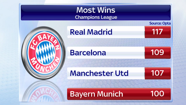 4. Bayern - Đội bóng thứ 4 trong lịch sử đạt cột mốc 100 chiến thắng tại Champions League.