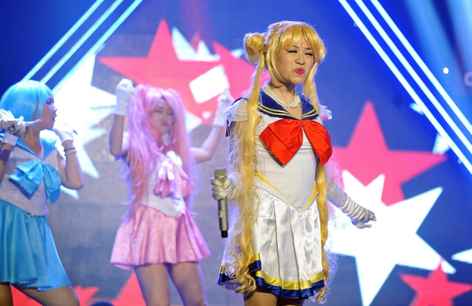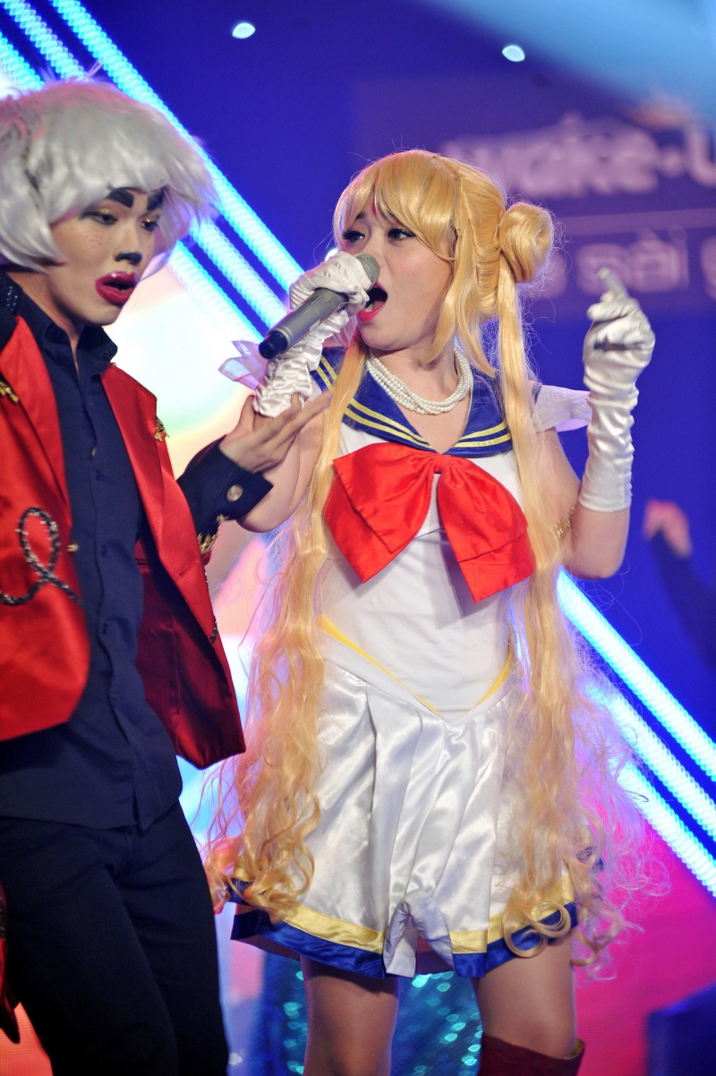 | Trong đêm chung kết, cô chơi trội khi hóa thành thủy thủ mặt trăng, trình diễn ca khúc nhạc Thái - Plash Out cùng vũ điệu "chặt cánh gà" từng gây sốt trên mạng. Bên cạnh đó, Mi-A còn trổ tài phun lửa khuấy động không khí trường quay. |