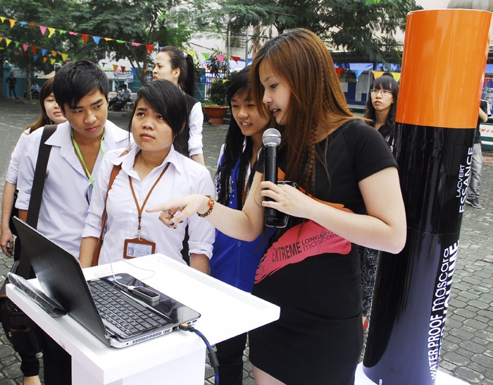 Bên cạnh việc tìm hiểu về tính năng sản phẩm, các bạn sinh viên còn được tham gia trò chơi do Lacvert Essance tổ chức, trong đó “Cut the Rope” thu hút rất đông các bạn tham gia. Với công nghệ Leaf Motion đòi hỏi sự khéo léo của bàn tay kết hợp “chiến thuật” tốt để giành chiến thắng và nhận quà tặng là 1 sản phẩm Mascara trị giá 128.000 đồng.