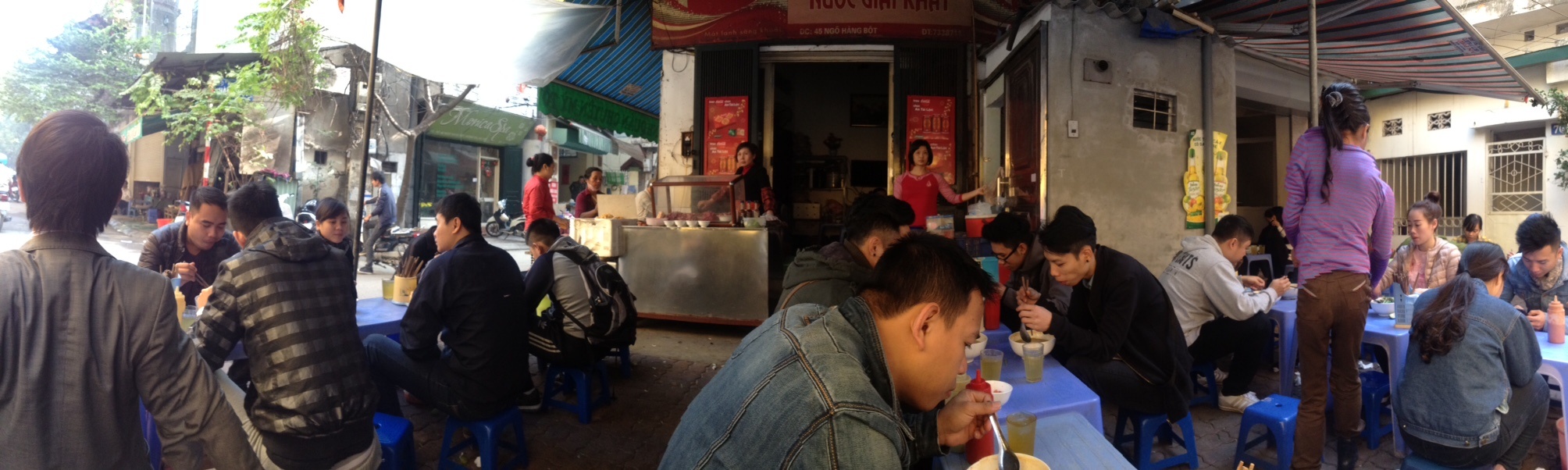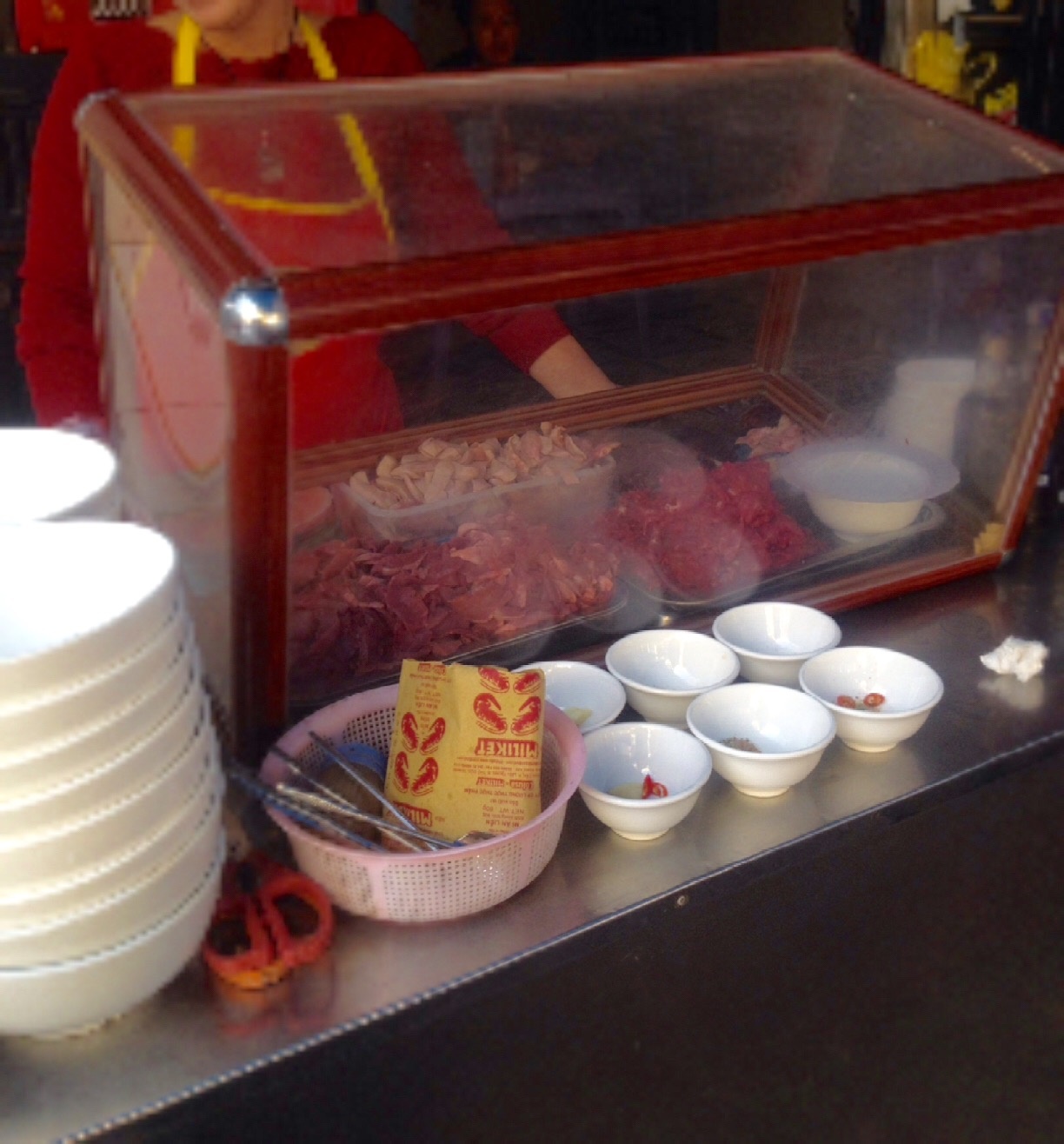 | Giống như bao tiệm bình dân đắt khách của Hà Nội, quán mang phong cách vỉa hè, giản dị, tềnh toàng. Ngoài bàn ghế nhựa, những tài sản giá trị nhất chỉ gồm một tủ kính đồ ăn, bát đĩa có người đứng xếp đồ và thái thịt, tim liên tay... |