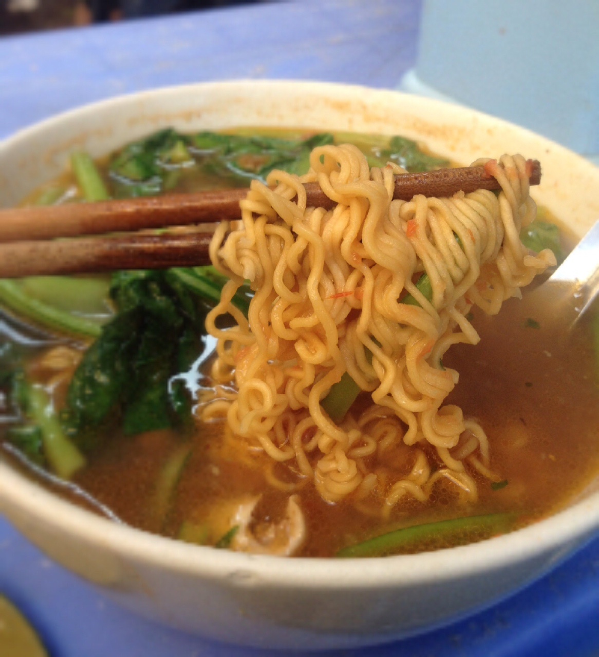 | Mì tôm bán theo cân thông thường nhưng được nấu chín tới cũng khiến người ăn ngon miệng hơn. Tại quầy bếp luôn có ca cà chua xay nhuyễn, được chưng rồi nấu chung với mì, tạo vị chua ngọt, thơm cho món ăn. |