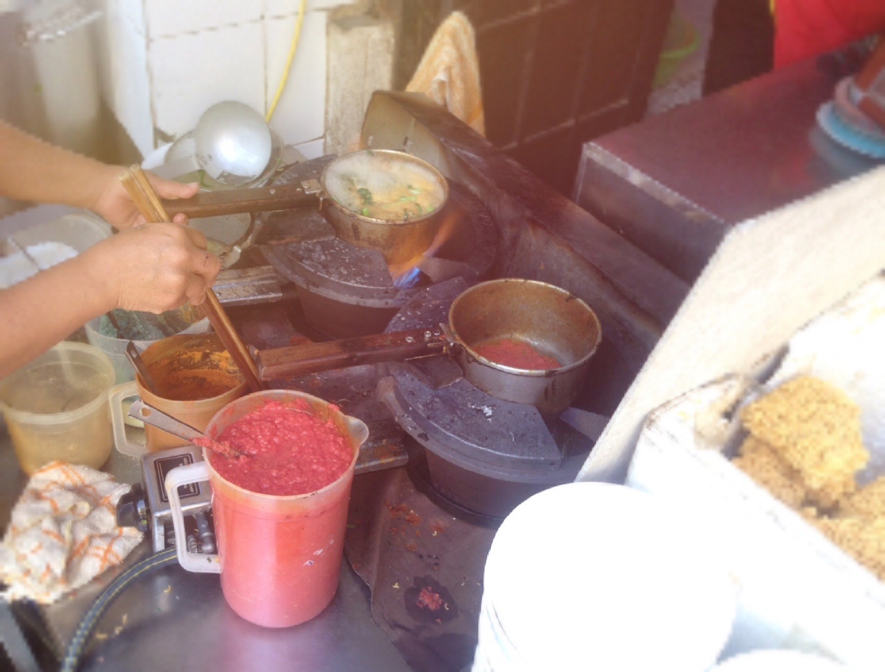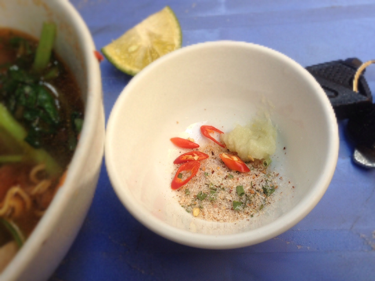 | Chủ quán luôn hỏi khách: "Ăn tỏi ớt đầy đủ không?". Hiếm người từ chối vì thứ tỏi xay nhuyễn không đâu có mới là loại gia vị quyến rũ, làm nước canh có hương vị, mùi thơm hấp dẫn, khiến khách chỉ nhấp môi thử đã phải ưng ngay. Thế nên, từng bát gia vị chanh cho khách chấm kèm cũng luôn có ớt và tỏi xay. |