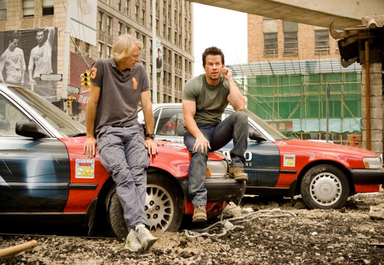 | Đạo diễn Michael Bay và ngôi sao Mark Wahlberg trên trường quay Transformers: Age of Extinction. Ảnh: Paramount |