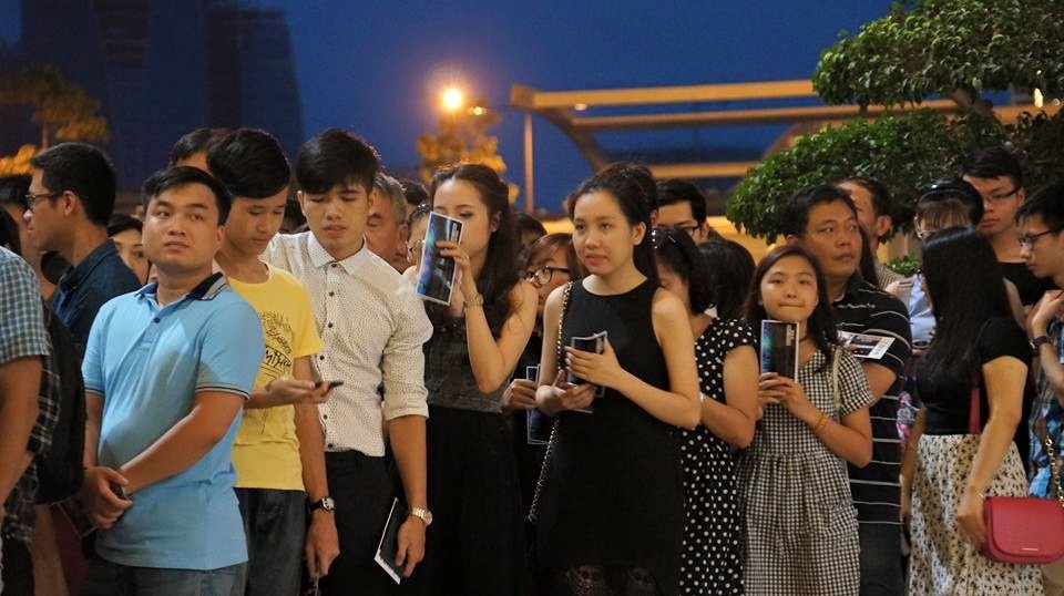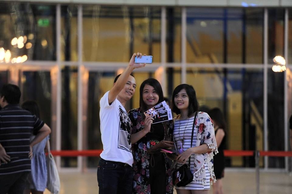 | Người hâm mộ tranh thủ chụp ảnh kỷ niệm, "khoe vé" với bạn bè. Michael Learns To Rock (MLTR) gần gũi và quen thuộc với khán giả Việt Nam từ những thập niên 80, 90 thế kỷ trước. |