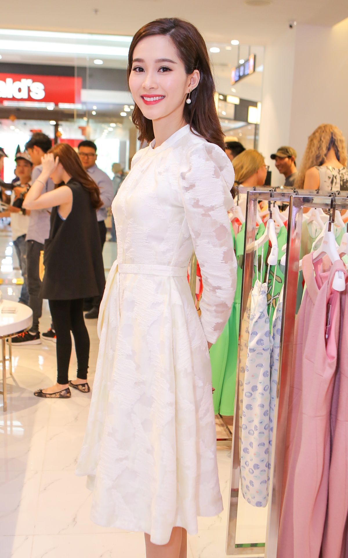 | Chiều 15/1, Midu tham dự sự kiện thời trang tại TP HCM. Nữ diễn viên chọn bộ cánh tông trắng hồng "kín cổng cao tường". Thời gian sau ồn ào chuyện ngoại tình của hôn phu, hot girl tích cực tham gia các hoạt động giải trí. |