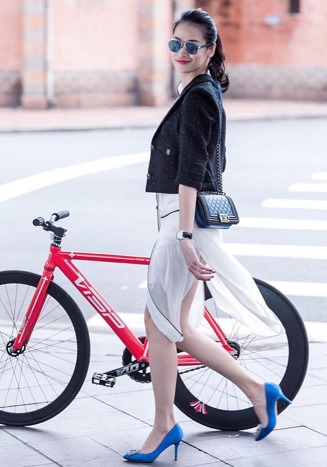 Nữ diễn viên xuất hiện nổi bật trên đường phố Sài thành với phong cách trẻ trung, mát mẻ.