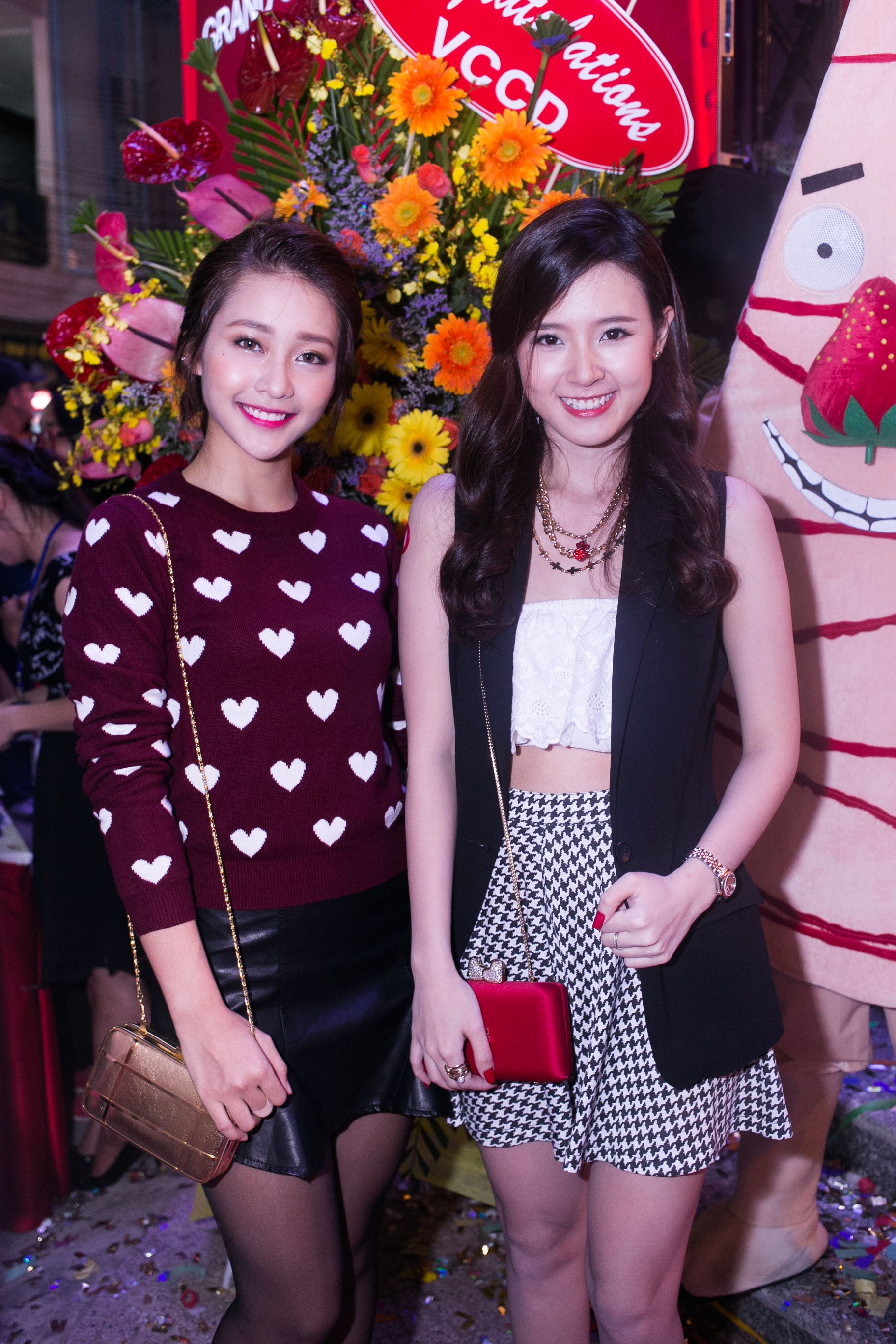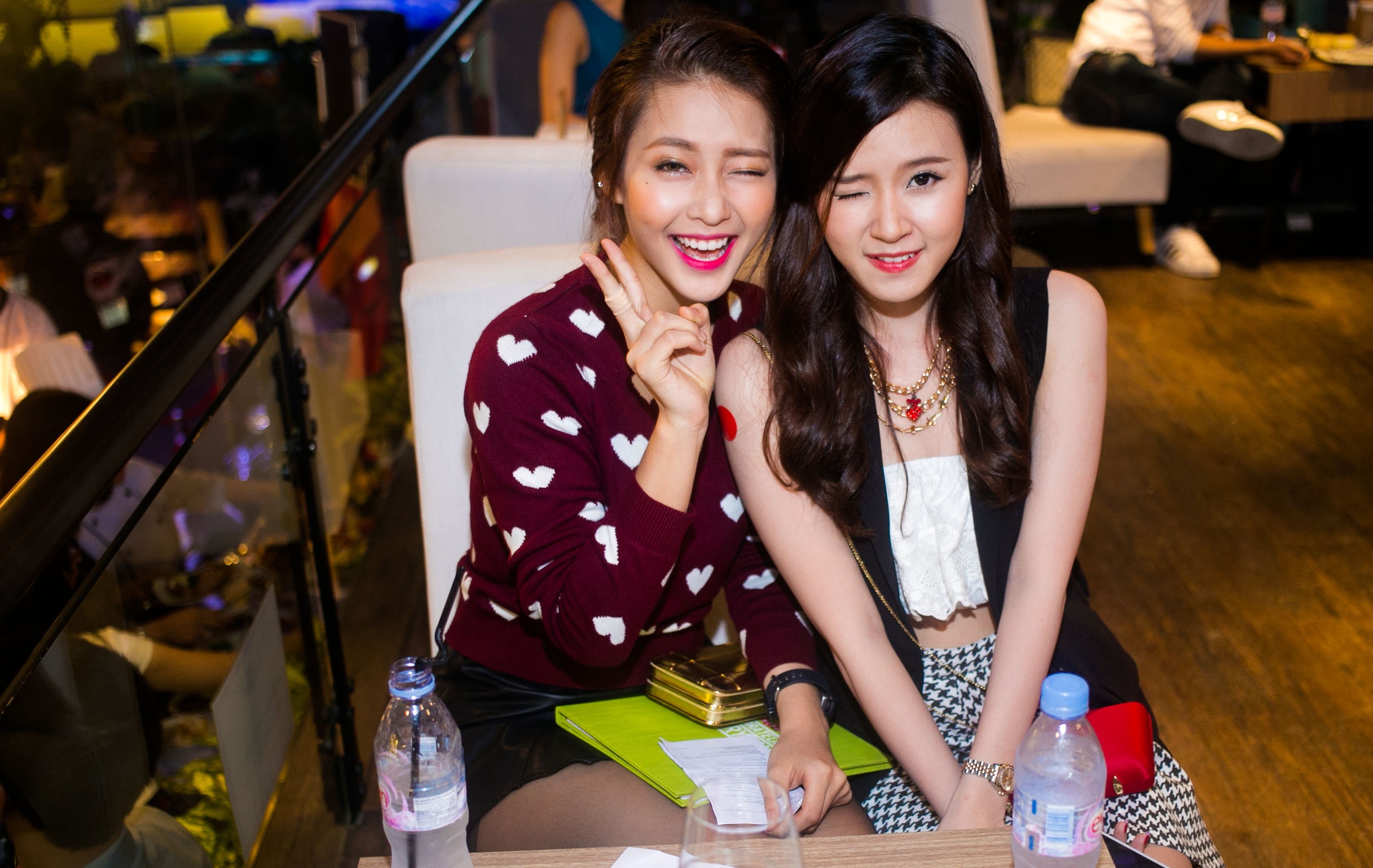 | Hai hot girl đình đám đọ vẻ tươi trẻ khi nhí nhảnh nháy mắt làm duyên. |