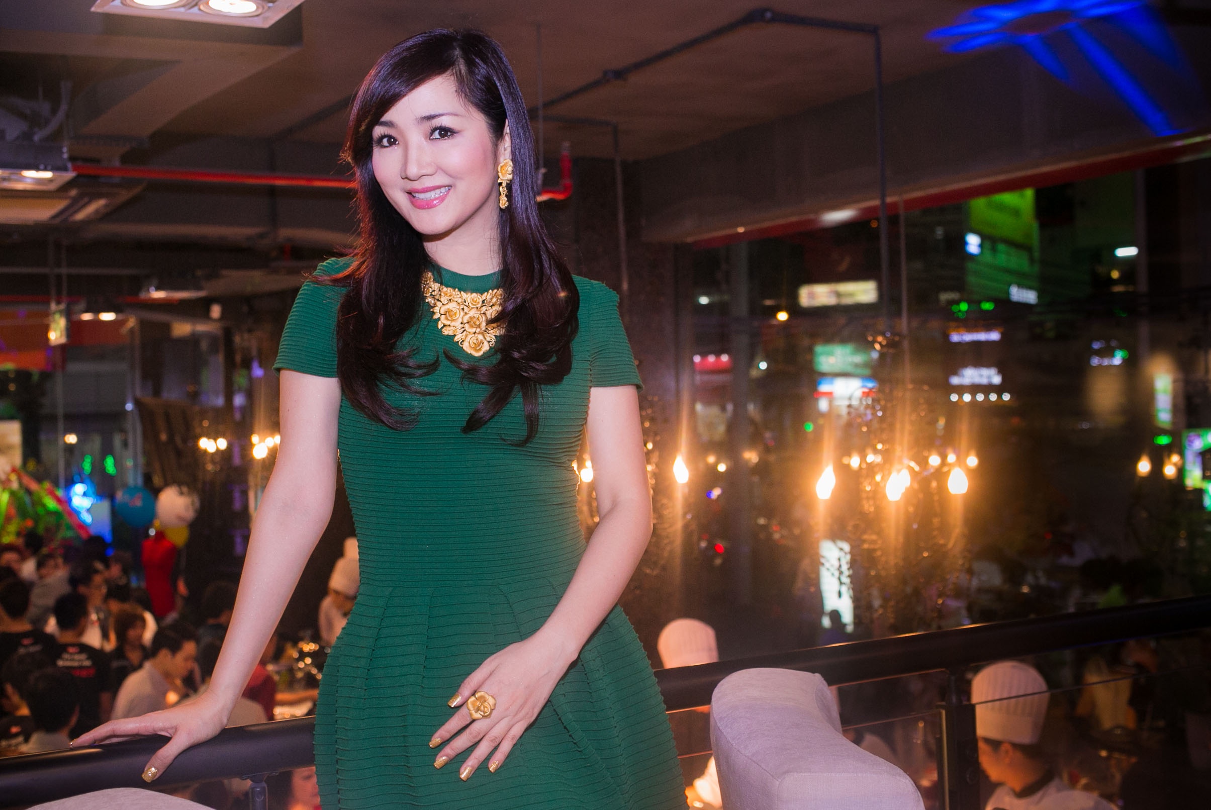 | Ver đẹp không tuổi của hoa hậu đền Hùng thêm phần rạng ngời nhờ bộ trang sức sang trọng, ấn tượng. |