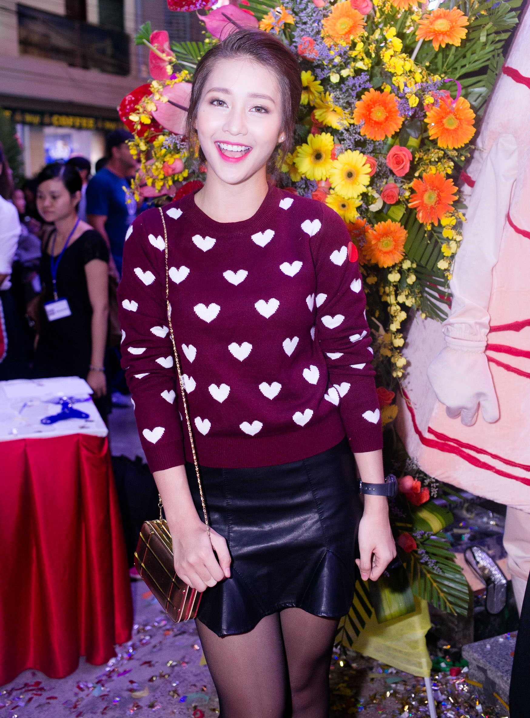 | Tối 14/11, diễn viên Midu có mặt tại buổi tiệc khai trương quán cà phê. Cô xuất hiện nổi bật với trang phục áo ống kết hợp cùng vest không tay và chân váy ngắn rất hiện đại và gợi cảm. Người đẹp đổi gu thời trang quyến rũ hơn nhằm xóa bỏ hình tượng gu thời trang sến sẩm bị truyền thông nhắm đến nhiều trong suốt hơn 1 năm nay. Đồng hành cùng Midu có hotgirl Khả Ngân, nữ người mẫu tuổi teen diện trang phục trẻ trung và hợp xu hướng. Cả hai không kém cạnh về nhan sắc khi đứng cạnh nhau. |