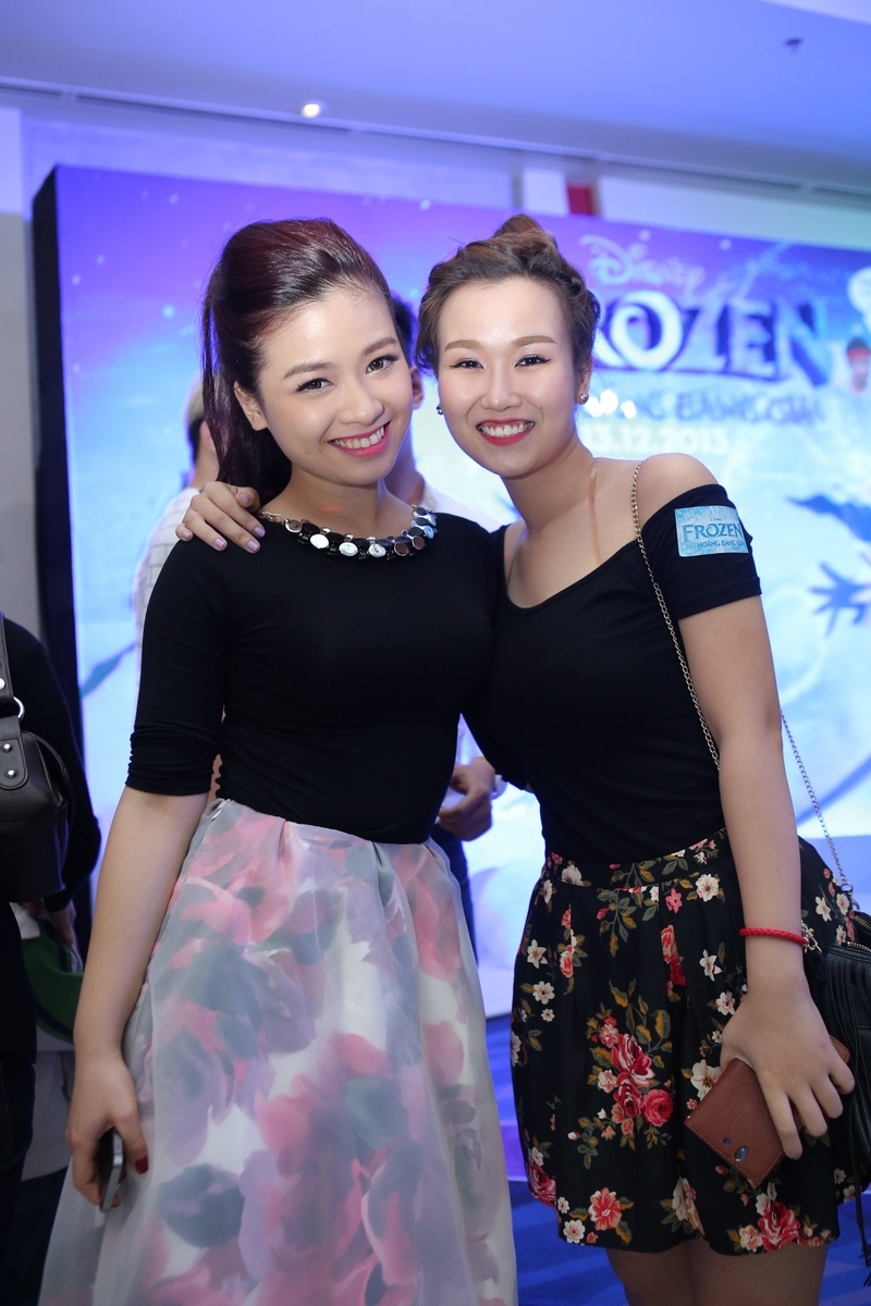 | Ngoài Hạ Trâm, Hoàng Yến - gà cưng của đội Mỹ Linh trong The Voice 2013 - cũng lồng tiếng cho phim. Vai của cô trong phim là nữ hoàng Elsa. |