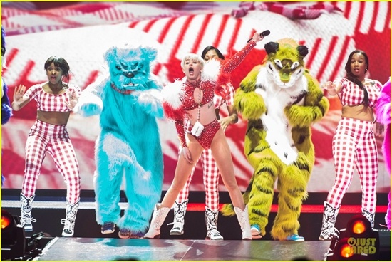 Nữ ca sĩ We Can’t Stop đã biểu diễn tất cả 20 ca khúc cho khán giả của mình tại đây. Trong đó có cả những hit cũ của cô như Party In The USA, Can’t Be Tamed…