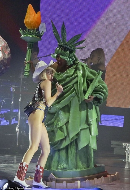 Nổi bật với trang phục lấy cảm hứng từ lá cây… cần sa, và cũng không quên chiêu đãi fan bằng những hình ảnh khiêu khích thường thấy. |
