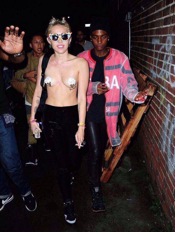 Dù mới 21 tuổi, Miley Cyrus thường xuyên gây sốc với nhiều chiêu trò và những bộ trang phục gây phản cảm. Suốt từ năm 2013 tới nay, tên của cô không mấy khi vắng mặt trên các mặt báo theo chiều hướng tiêu cực. Gần đây nhất, nữ ca sĩ tới dự buổi tiệc của nhà thiết kế Vera Wang trong thời gian diễn ra tuần lễ thời trang New York với phần trên cơ thể chỉ được che đậy bằng hai miếng dán ngực trang trí hình kem.