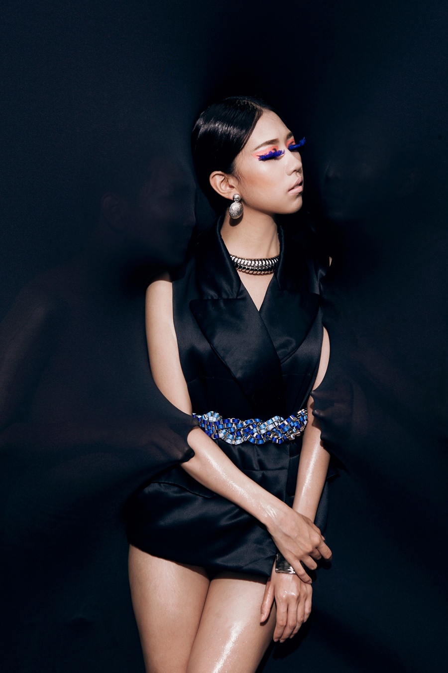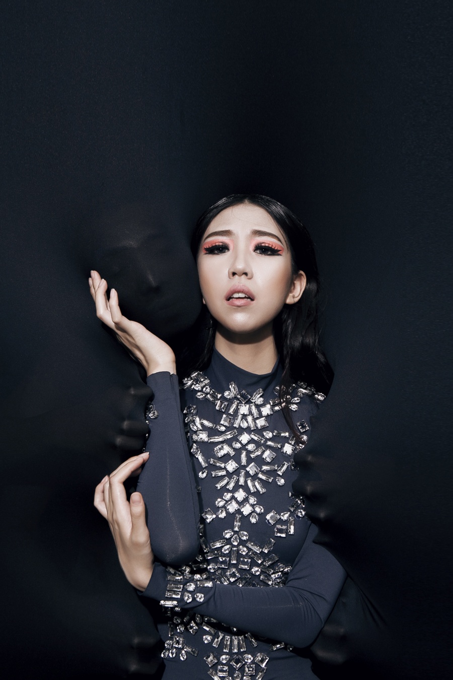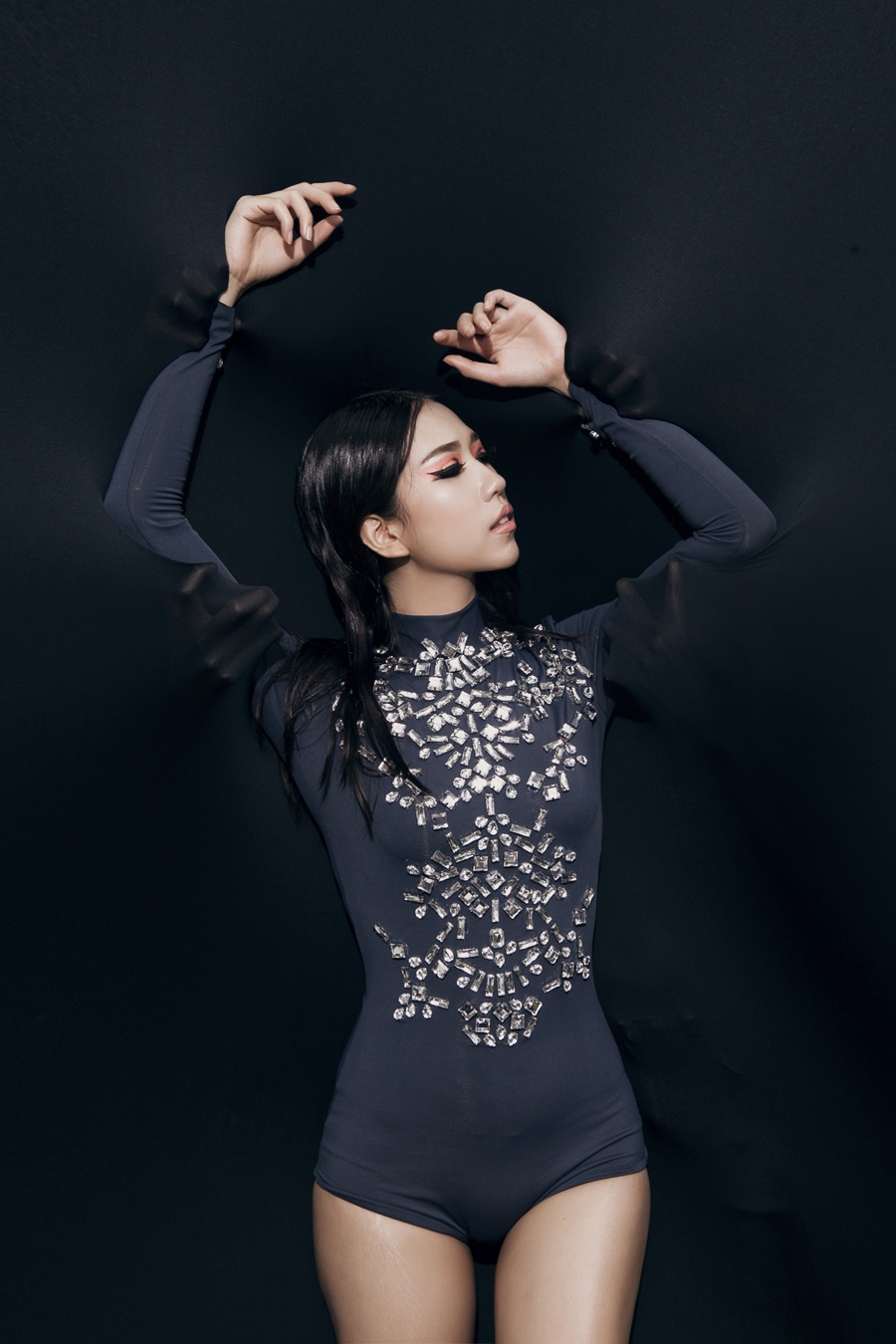 Nữ ca sĩ trẻ của nhóm nhảy đình đám St 319 cho thấy sự quyến rũ và trưởng thành hơn với hình ảnh đôi tay ôm ngực trần trong bìa mini album "Stuck".