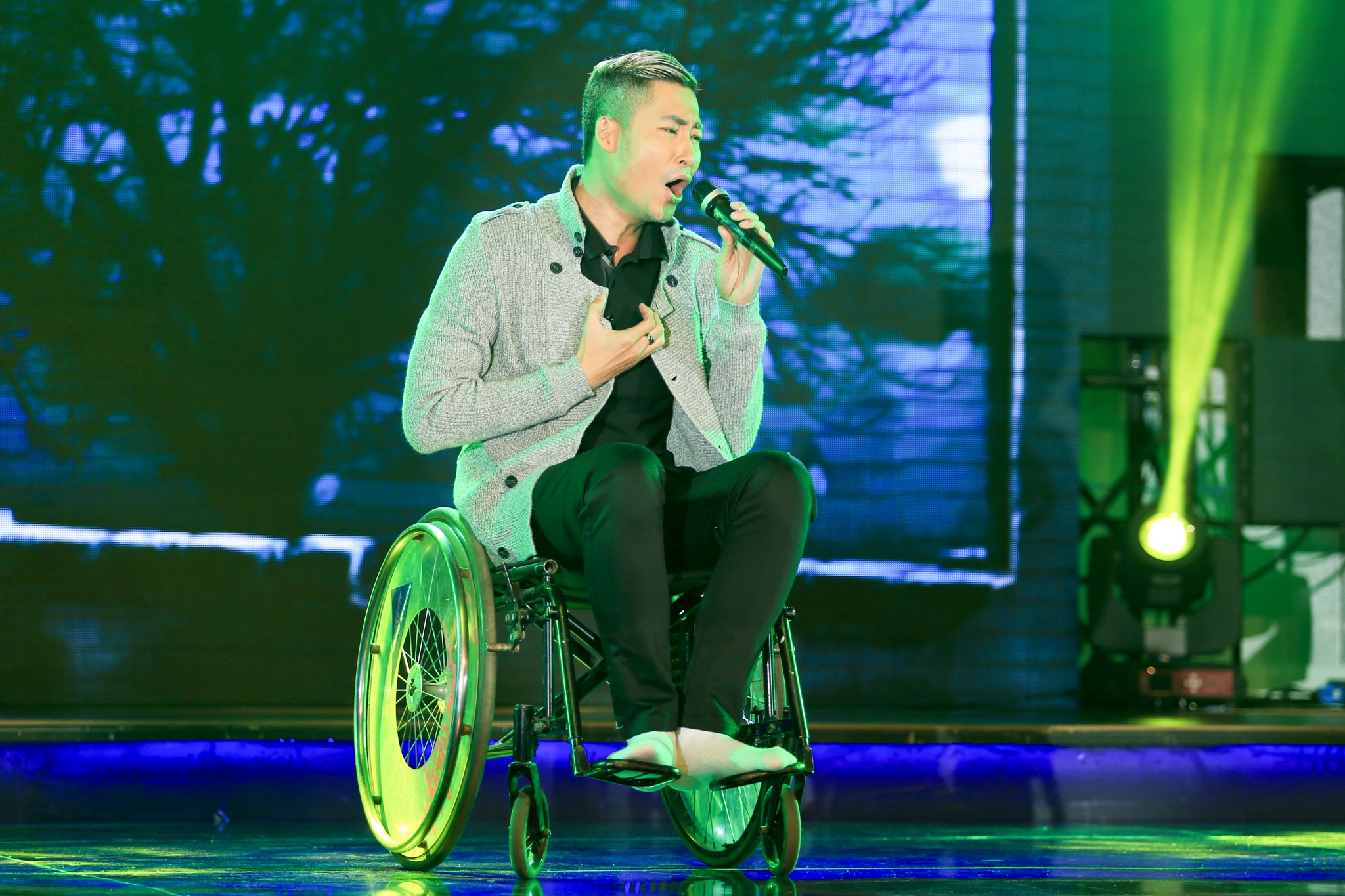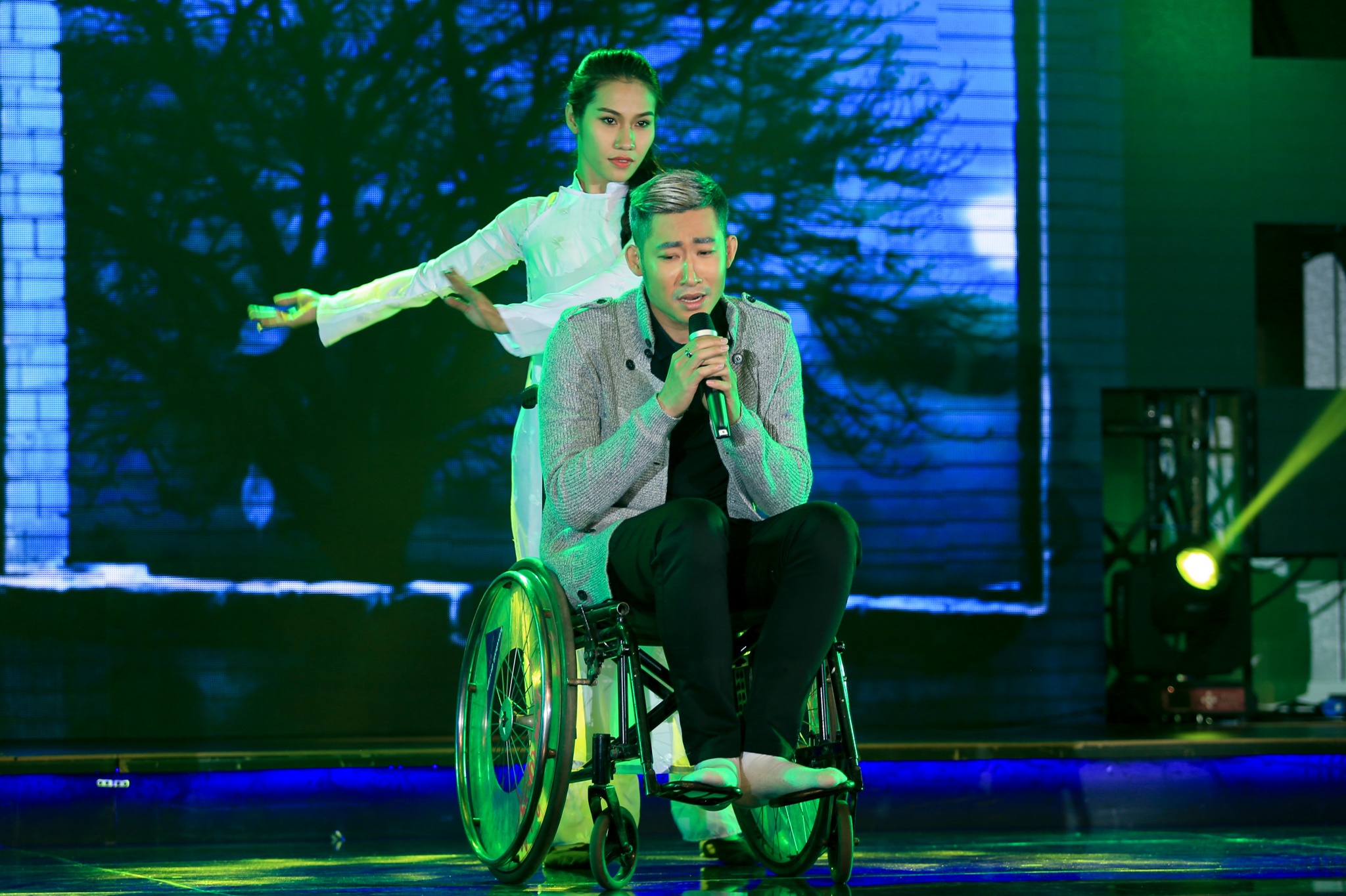 | Giám khảo Giáng My đánh giá, đây là phần trình diễn dũng cảm vì Trọng Nhân “cả gan” hát cùng lúc 2 ca khúc trên chiếc xe lăn mà không cần sử dụng chiêu trò nhưng vẫn thu hút người xem bằng những thể hiện quá nhập vai. |