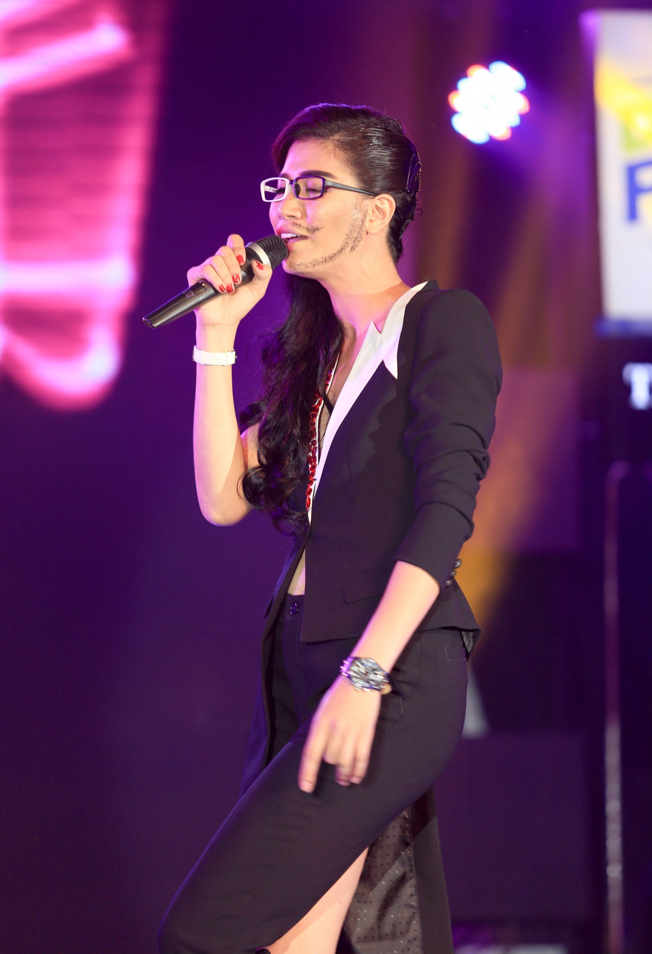 | Tiết mục càng “hot” hơn khi cô bất ngờ cởi bỏ bộ trang phục “chuẩn men” lúc đầu để chuyển sang một phần trình diễn vô cùng quyến rũ. |