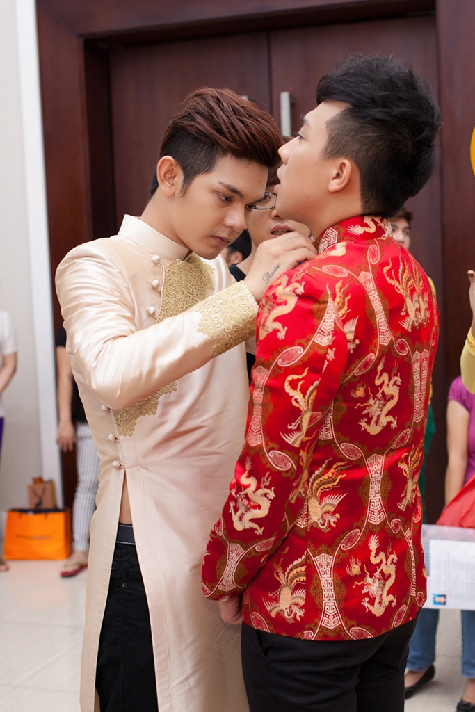 Trước khi bước lên sân khấu "Gala nhạc Việt", các sao Việt tranh thủ đùa nghịch cùng nhau ở hậu trường.