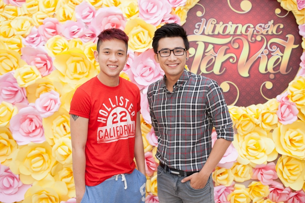 | Sơn Ngọc Minh và Bùi Anh Tuấn. Trong Gala nhạc Việt lần này, thành viên V.Music cũng tham gia diễn xuất trong một phim ngắn mang tên Tết đoàn viên cùng NSƯT Kim Xuân. |