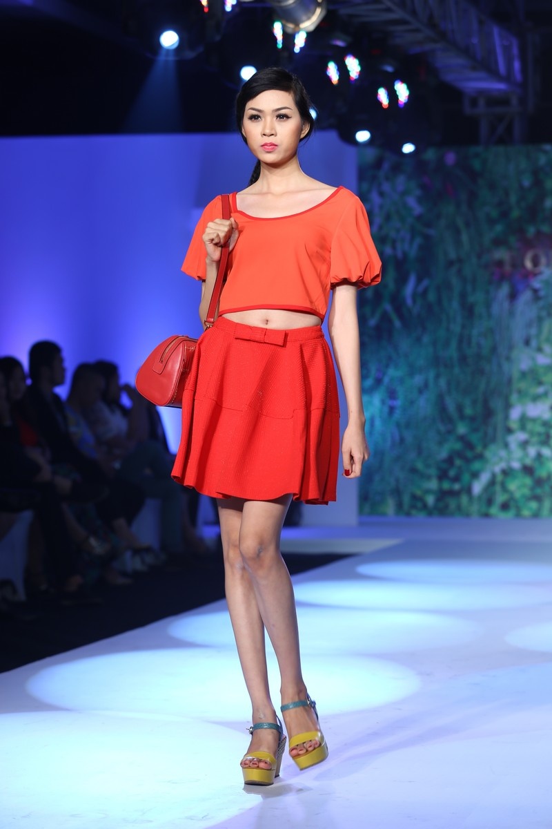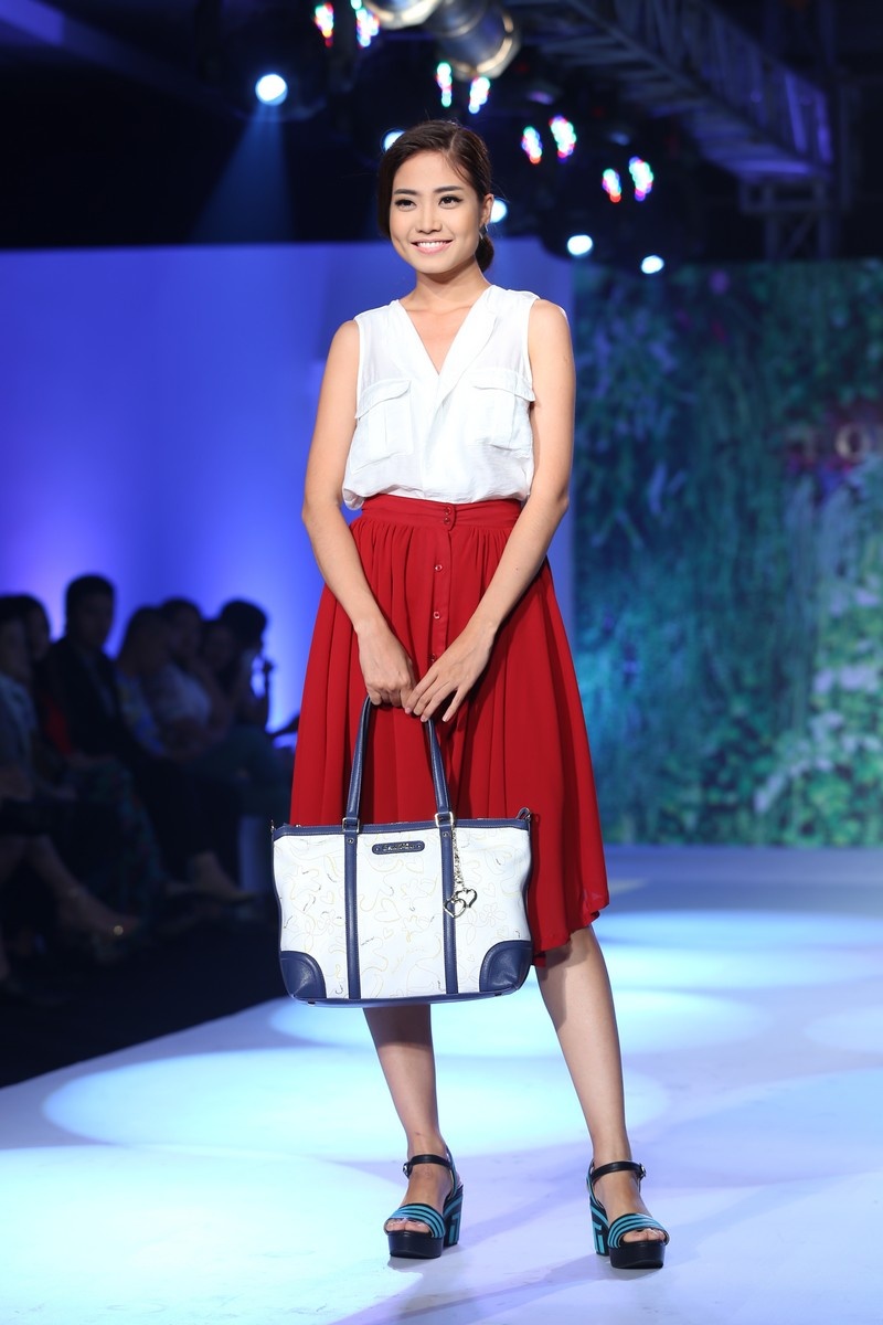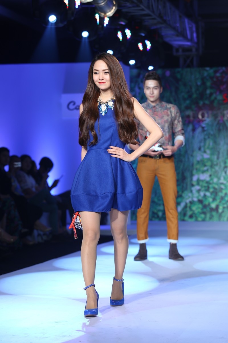 | Xuất hiện trên sàn diễn thời trang không thuộc sở trường, nữ ca sĩ Sắc môi em hồng đã khiến không khí buổi diễn trở nên sôi động hơn với cách sải bước tự tin, năng động và diễn xuất nhí nhảnh dễ thương. |