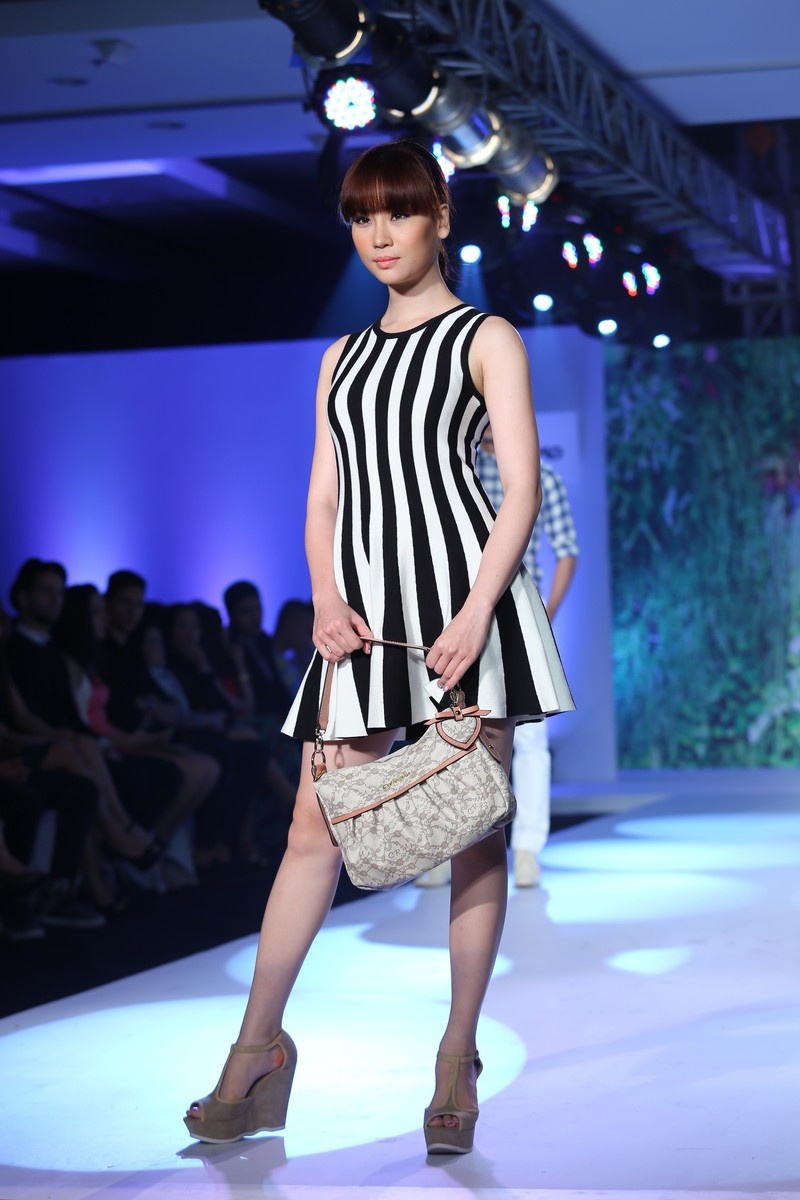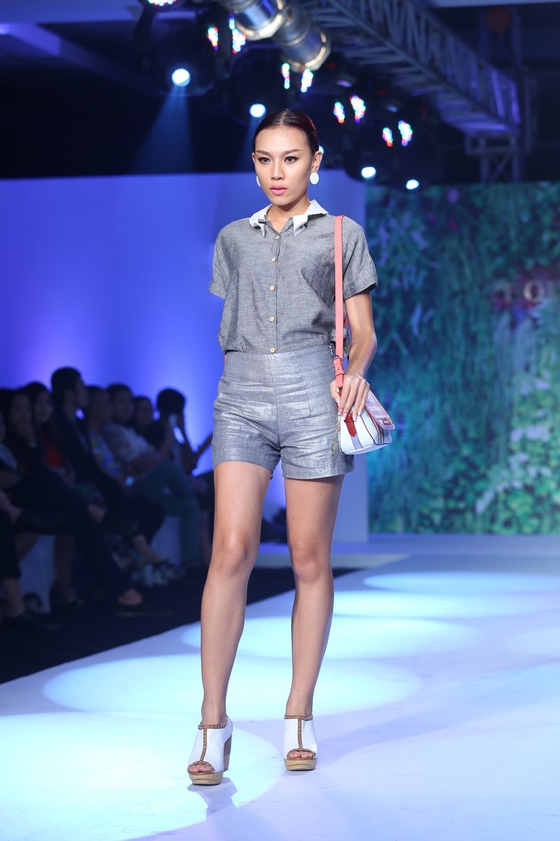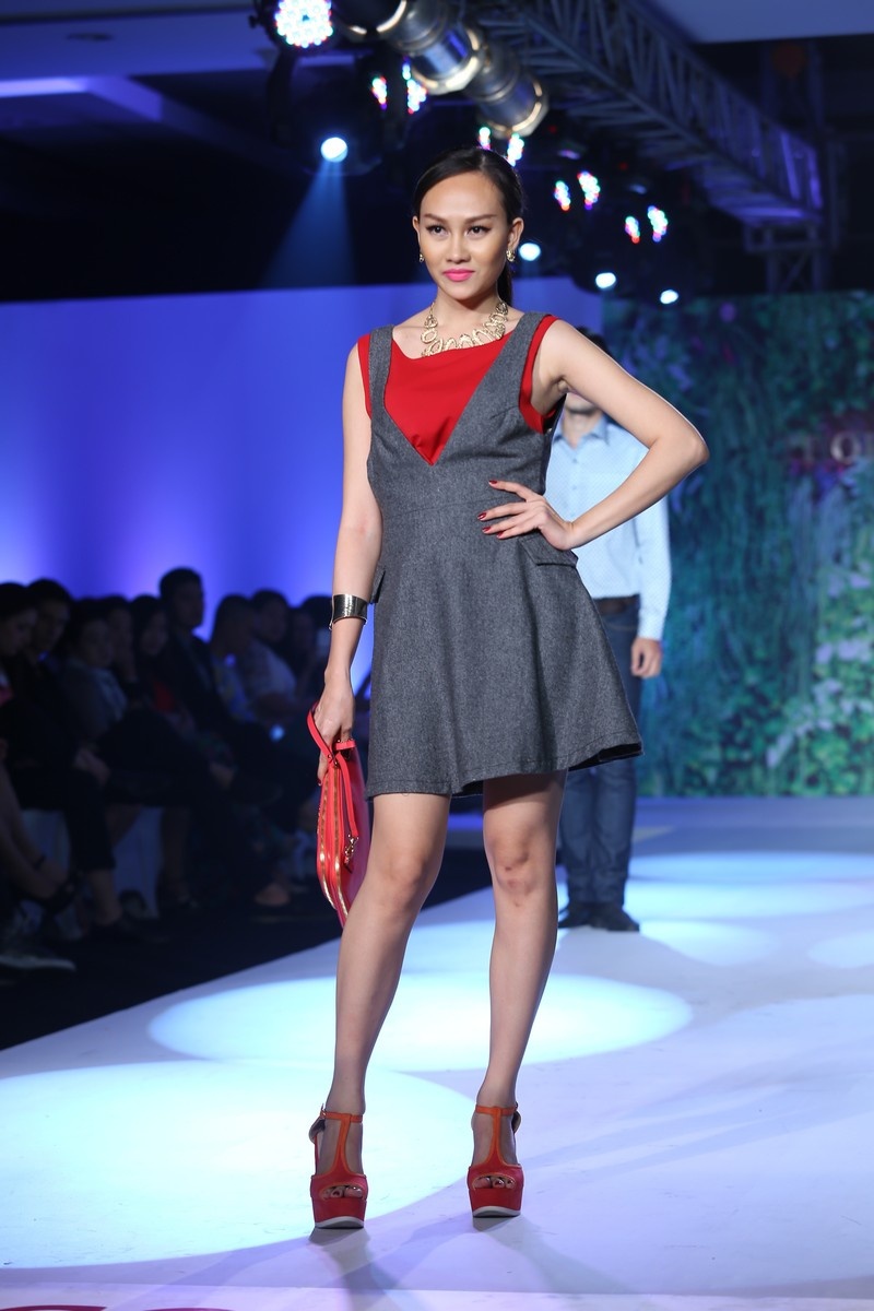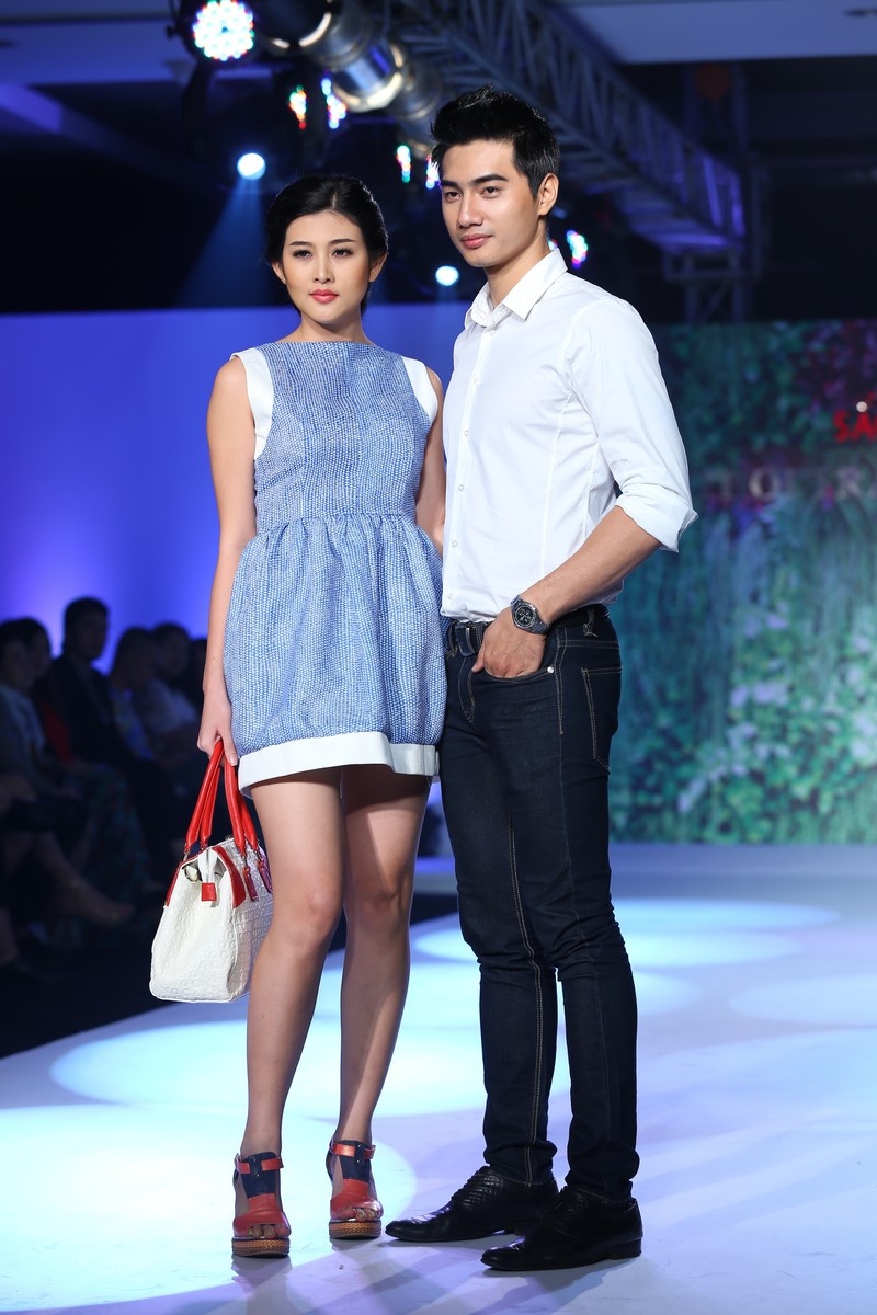 | Xuất hiện trên sàn diễn thời trang không thuộc sở trường, nữ ca sĩ Sắc môi em hồng đã khiến không khí buổi diễn trở nên sôi động hơn với cách sải bước tự tin, năng động và diễn xuất nhí nhảnh dễ thương. |