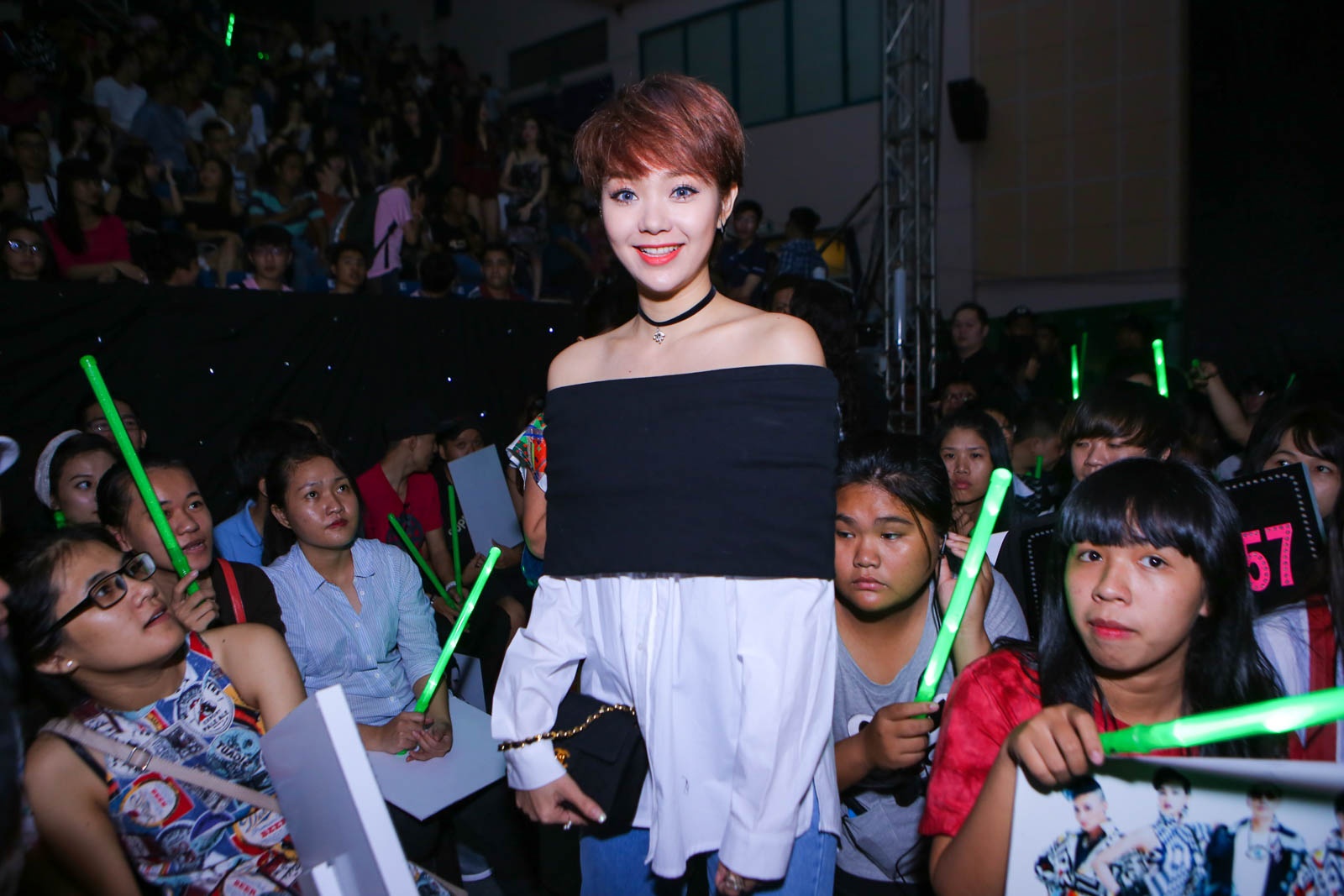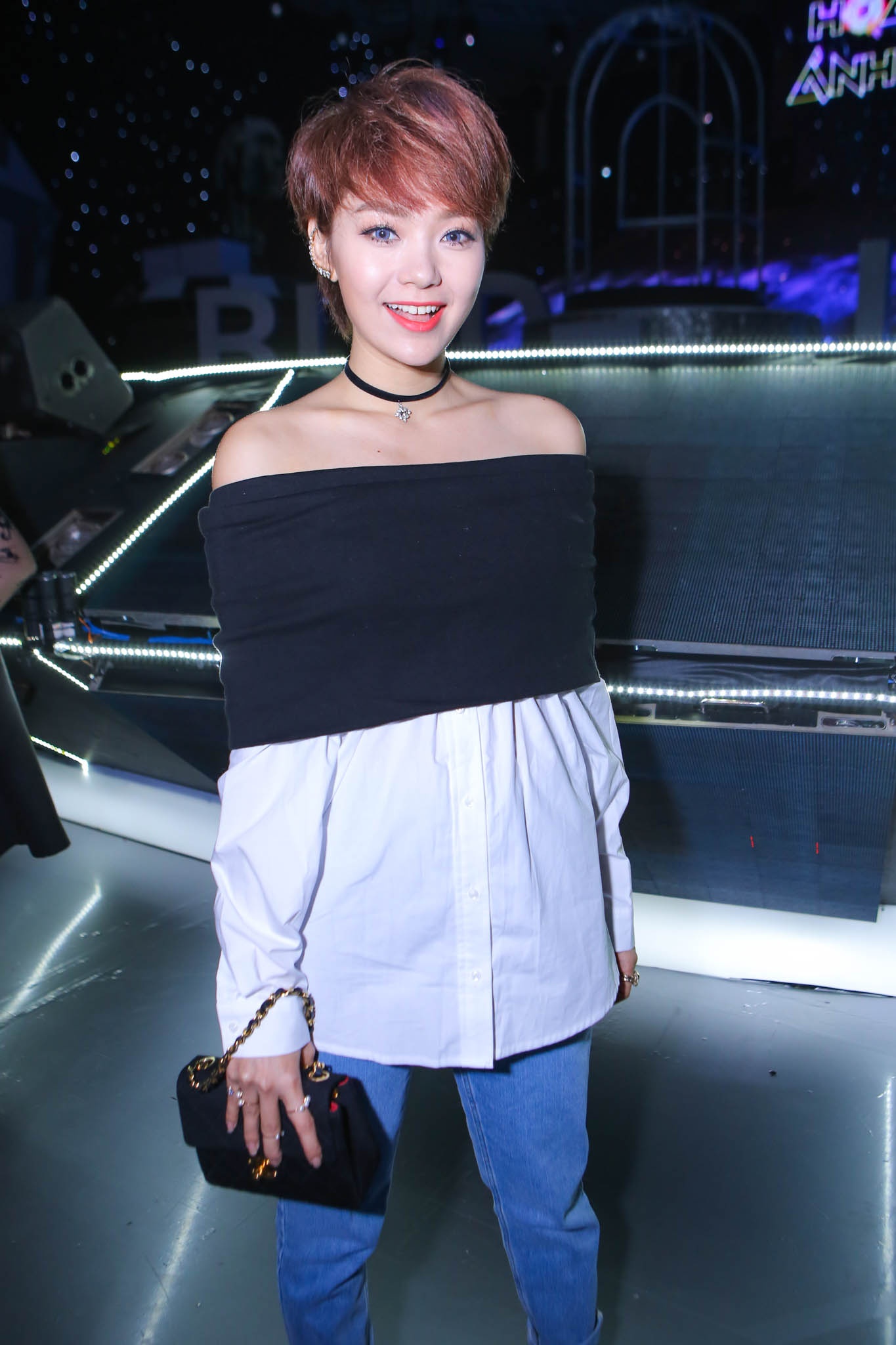 | Tranh thù ngày cuối tuần rãnh rỗi, Minh Hằng dành thời gian đến thưởng thức đêm thi thứ 2 của The Remix diễn ra tại sân khấu Nguyễn Du (TP HCM). Nữ ca sĩ diện trang phục đơn giản, đậm chất tom boy. |